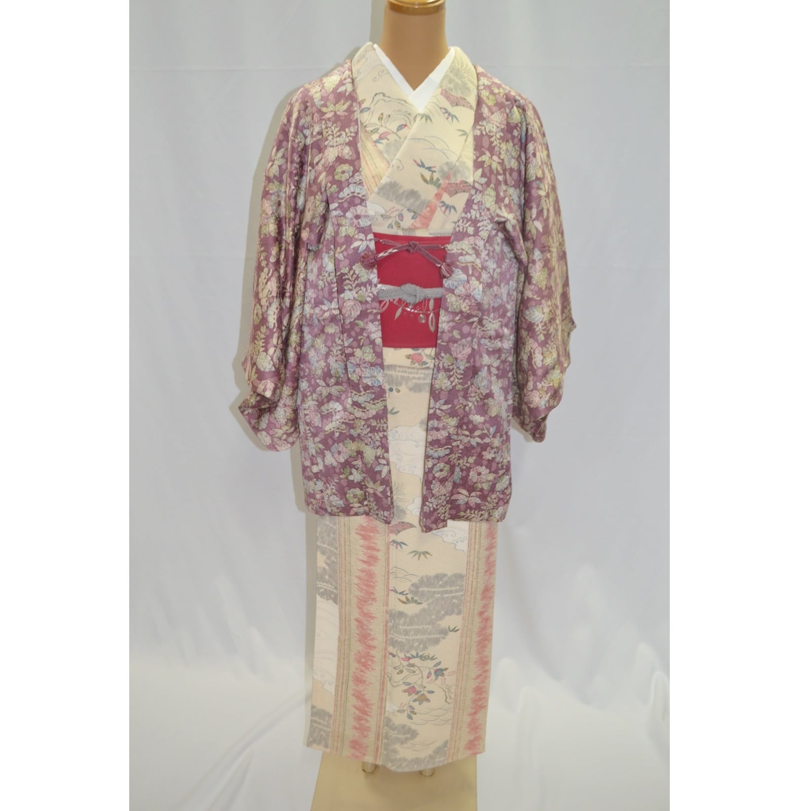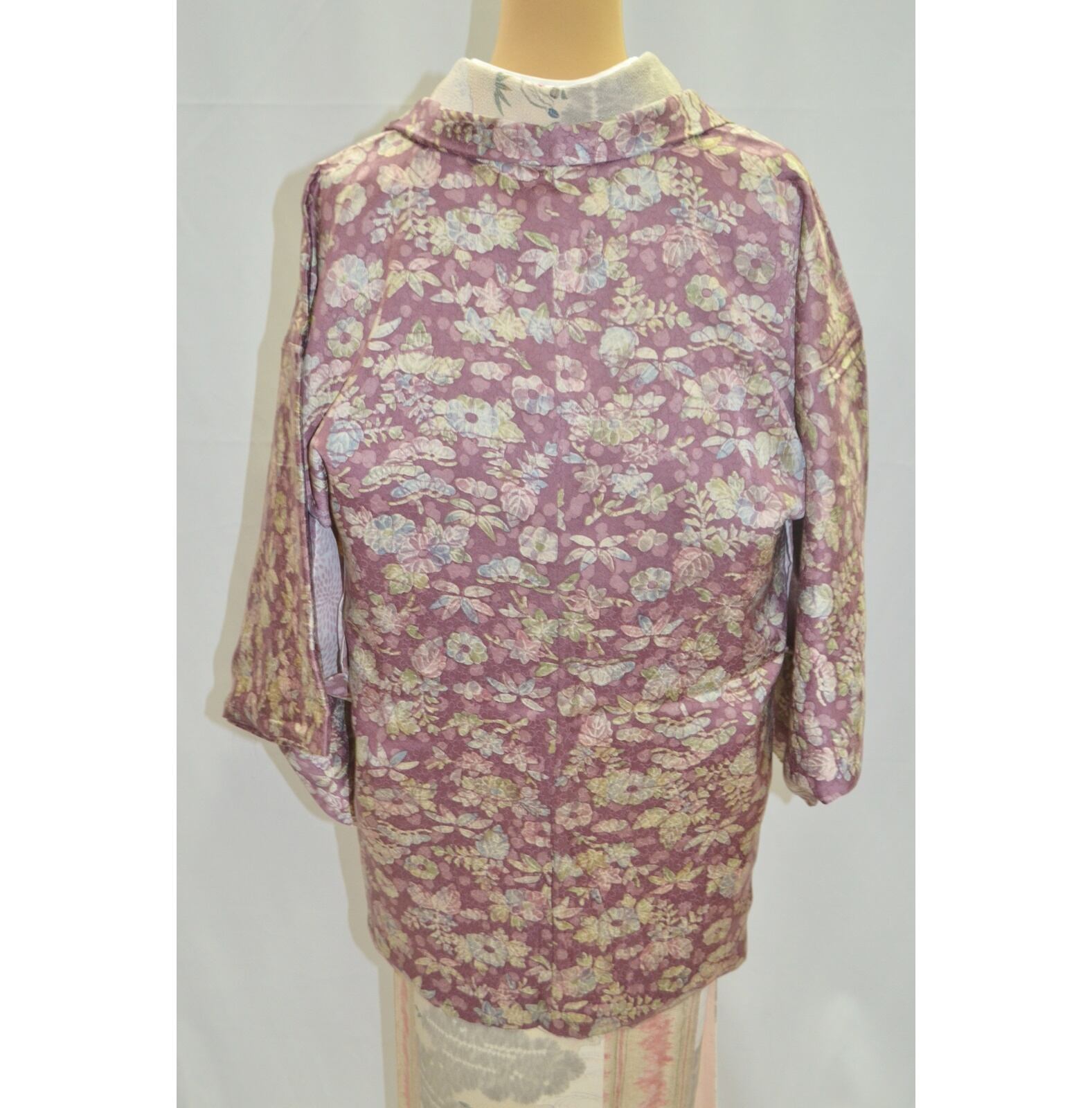 【羽織】スモーキーパープル☆ろうけつ染め四季の花【美品】