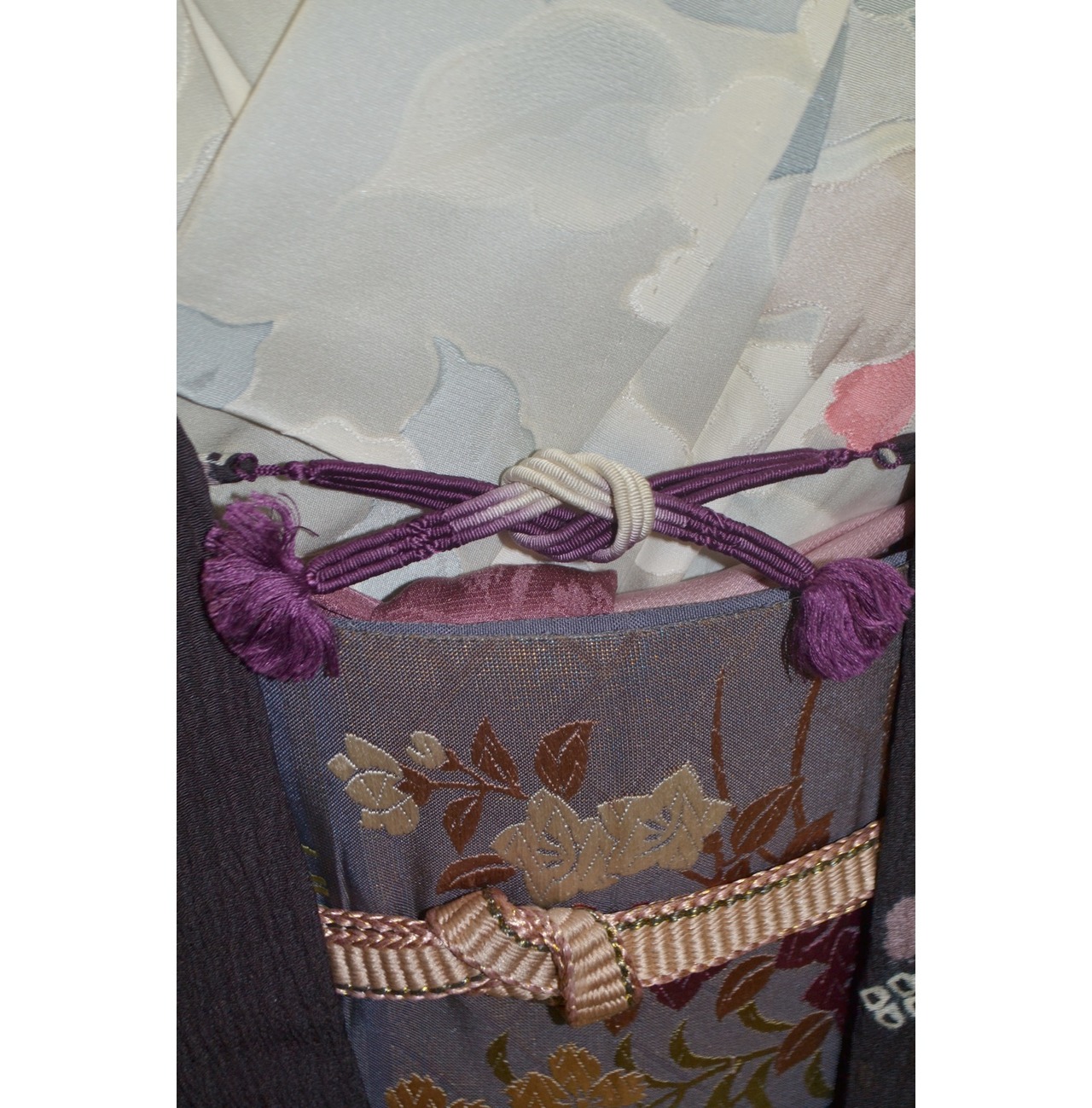 縦にうねのある膨れ織で、少しグレーのかかった濃い紫いろです。