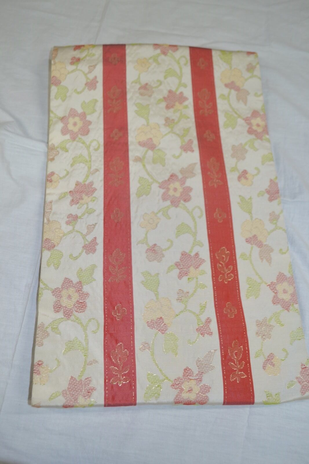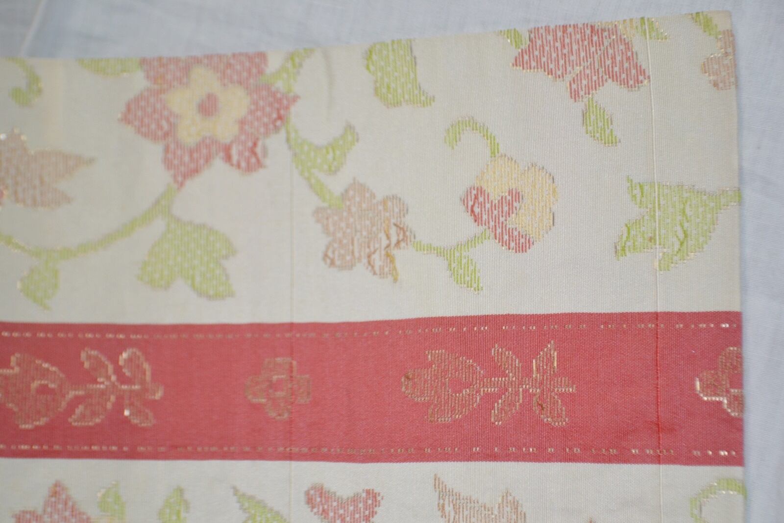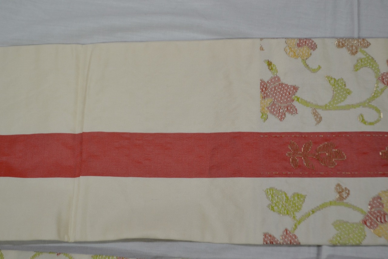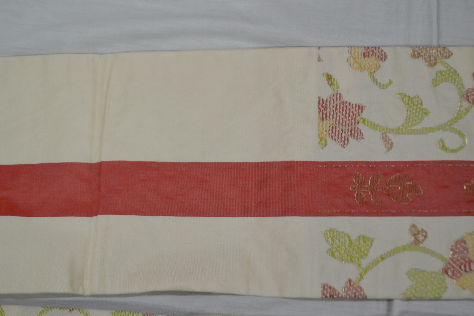 アンティーク帯 九寸名古屋帯 白地 花唐草