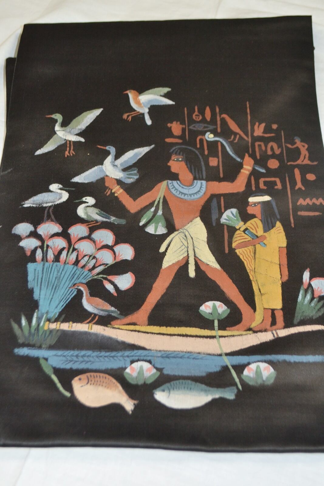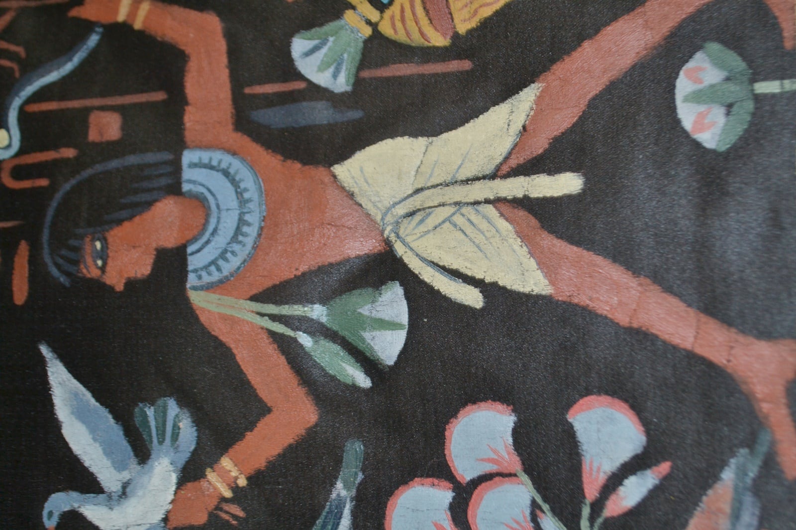アンティーク帯 九寸名古屋帯 繻子 手描き エジプト絵画
