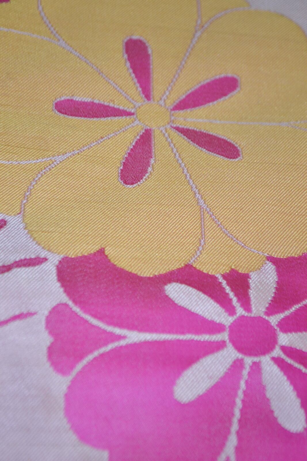 アンティーク帯 九寸名古屋帯 シャイニーピンク 水面 カラフルな菊
