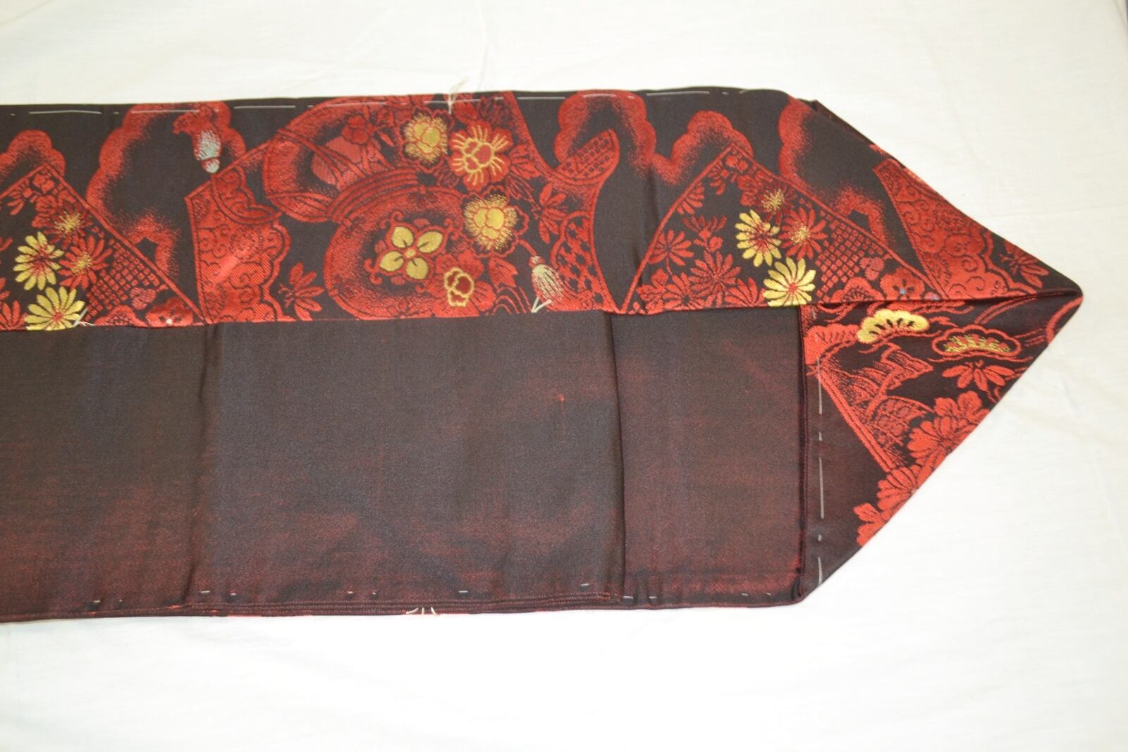 アンティーク帯 九寸名古屋帯 赤系 鼓 本 四季の花