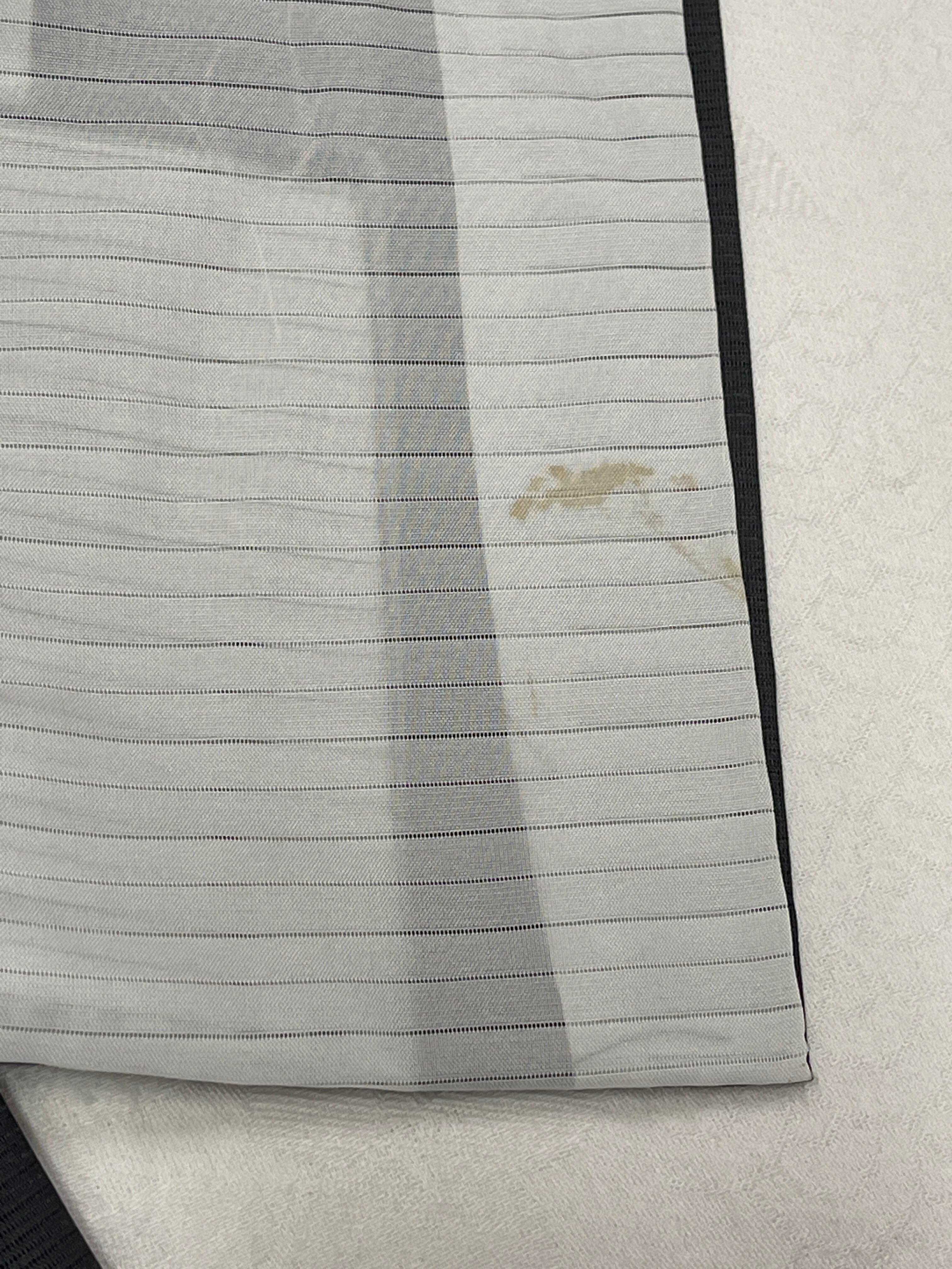 左衿先の裏にシミ有。左右の衿に汗シミ有。