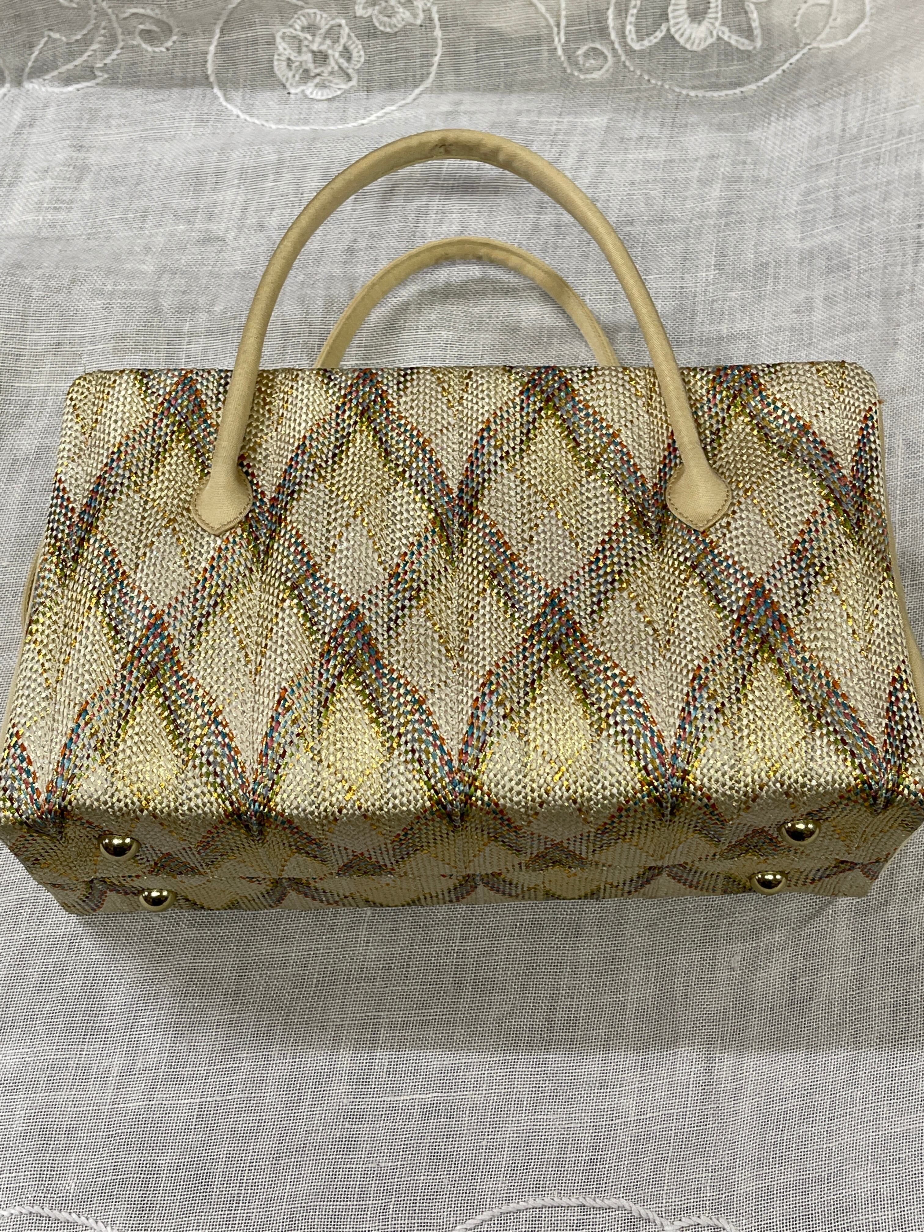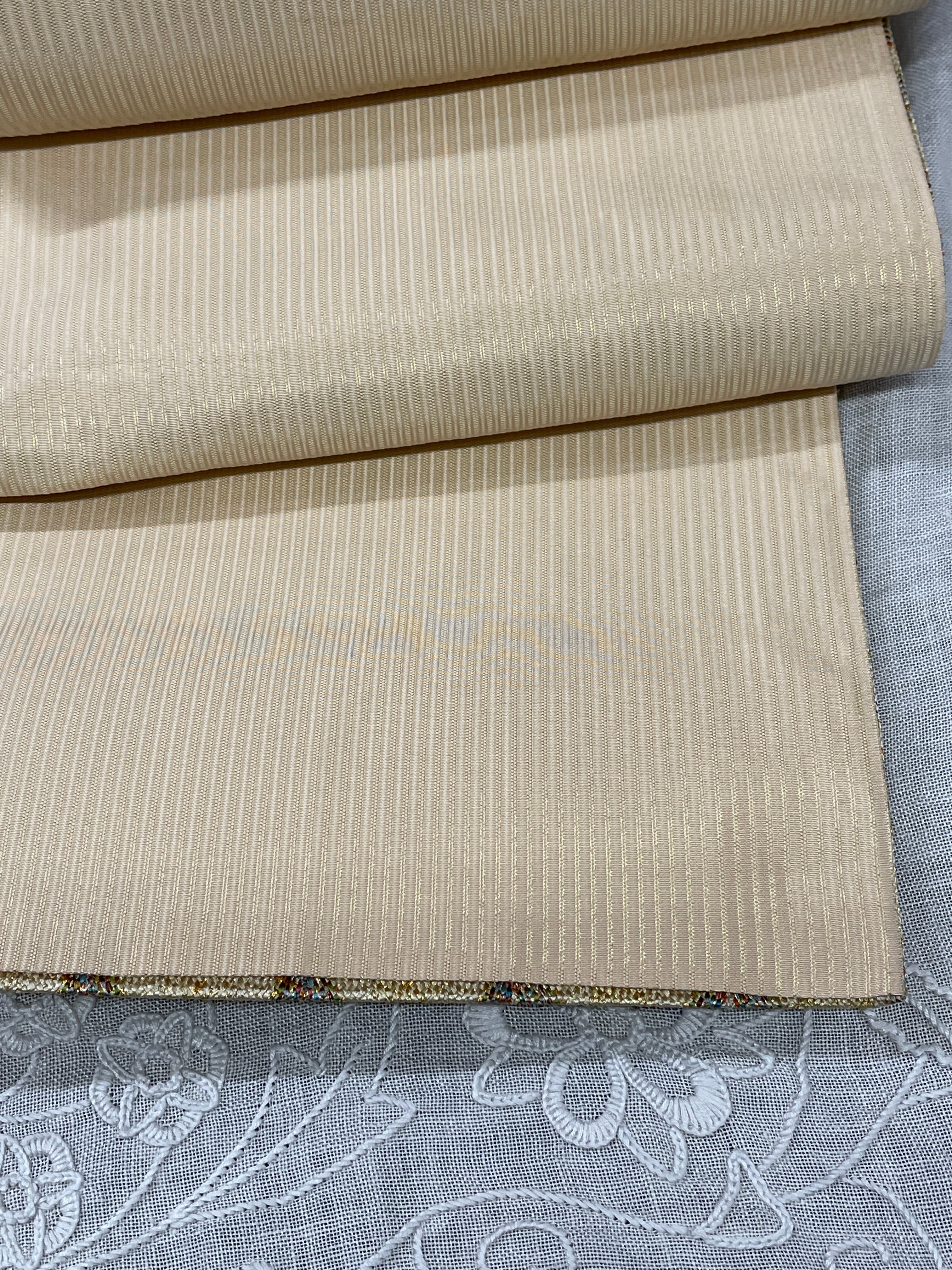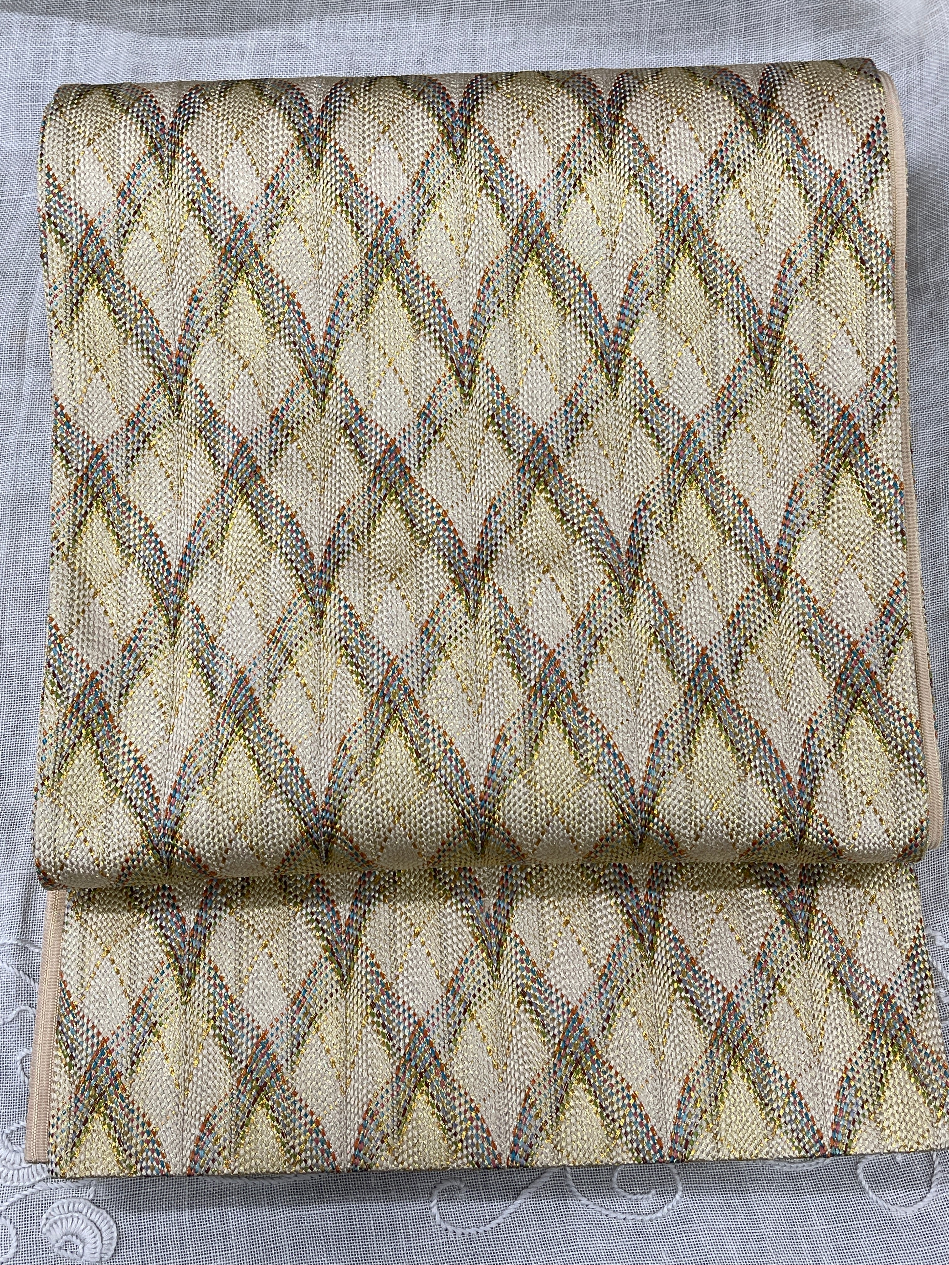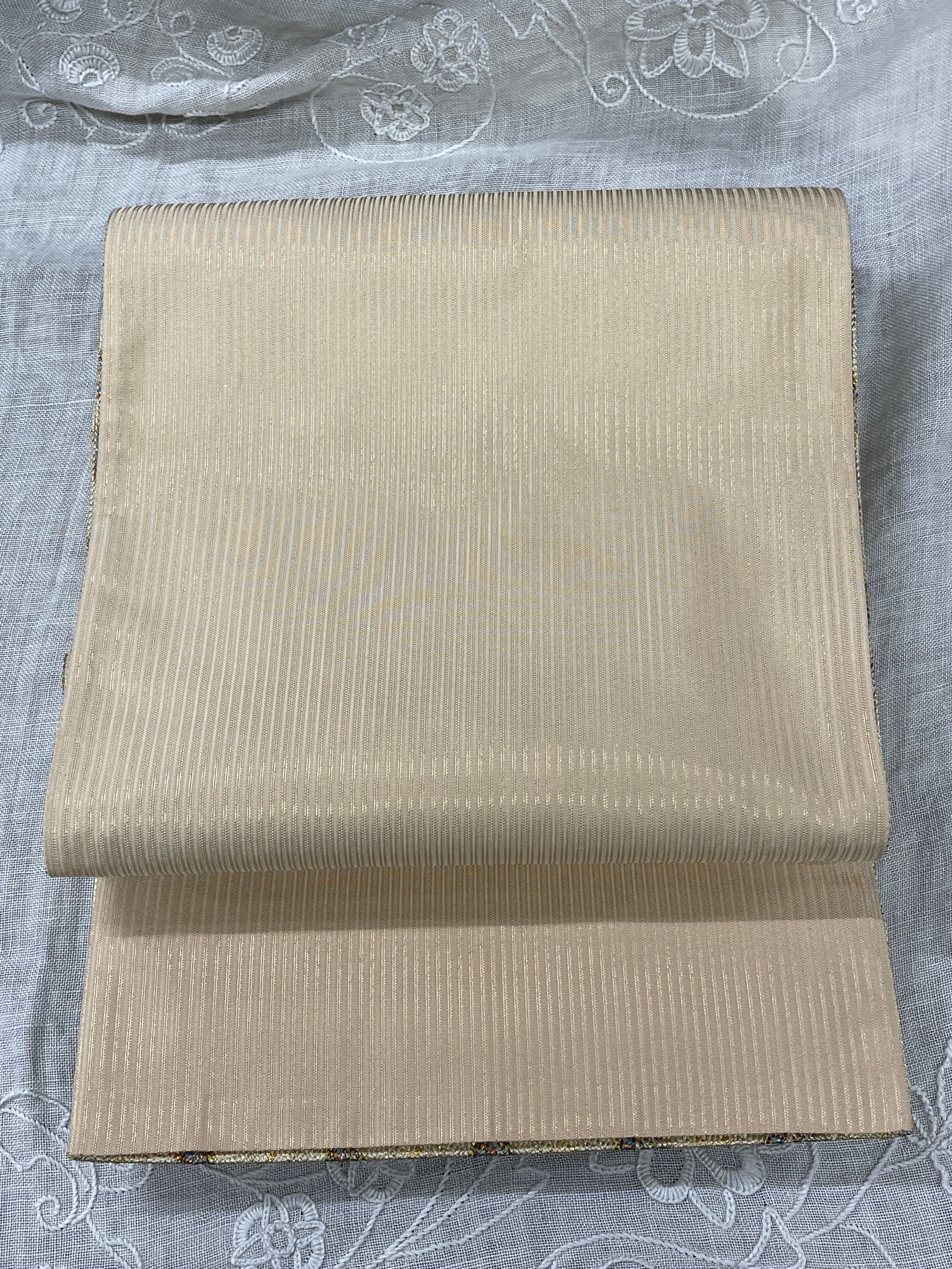 夏帯 袋帯 利休バッグ セット ベージュ系 金糸 組紐 礼装 リバーシブル