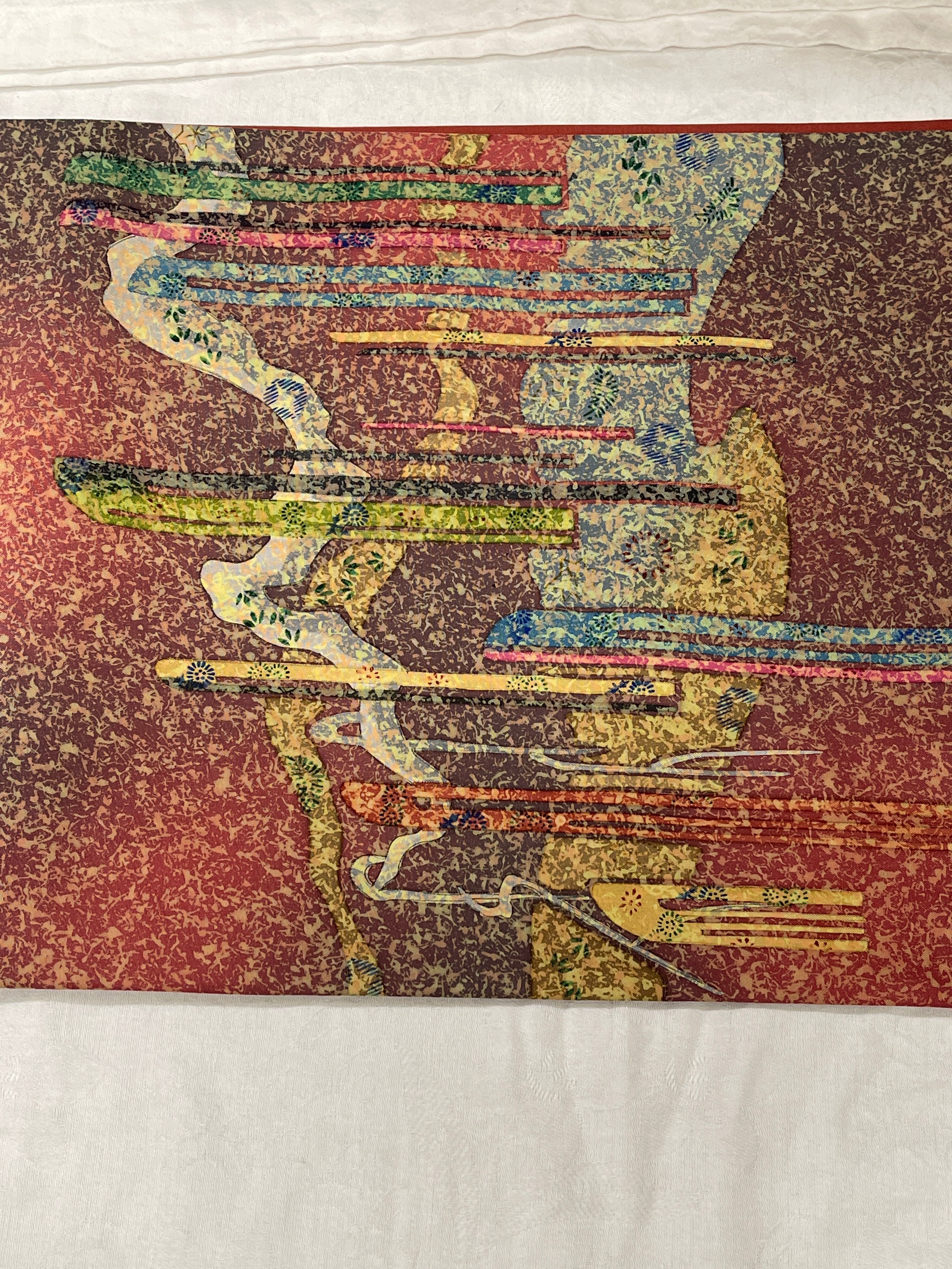 袋帯 しゃれ袋帯 ろうけつ染 赤紫系 全通
