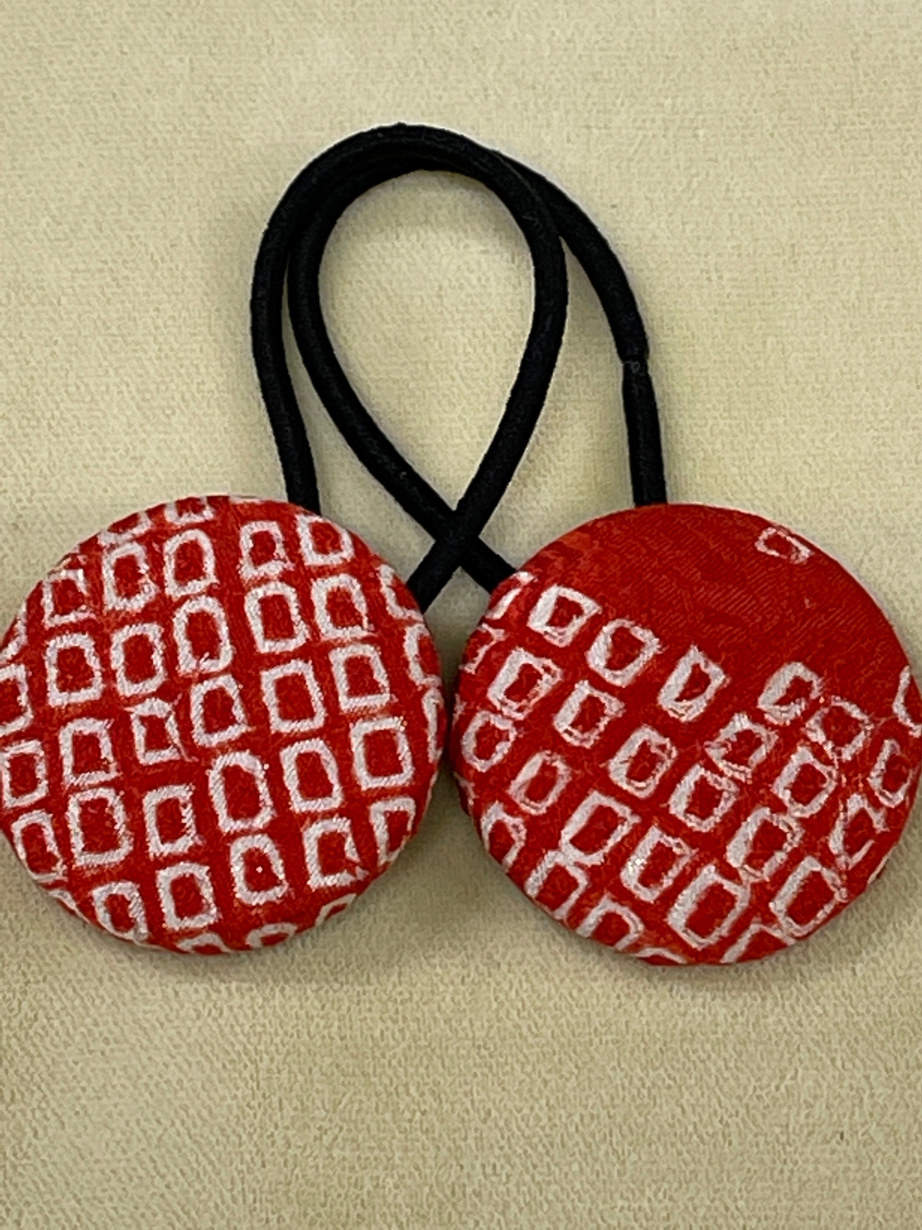 着物や浴衣、洋服生地のハギレを使ってくるみボタンを使ってヘアゴムを作りました。