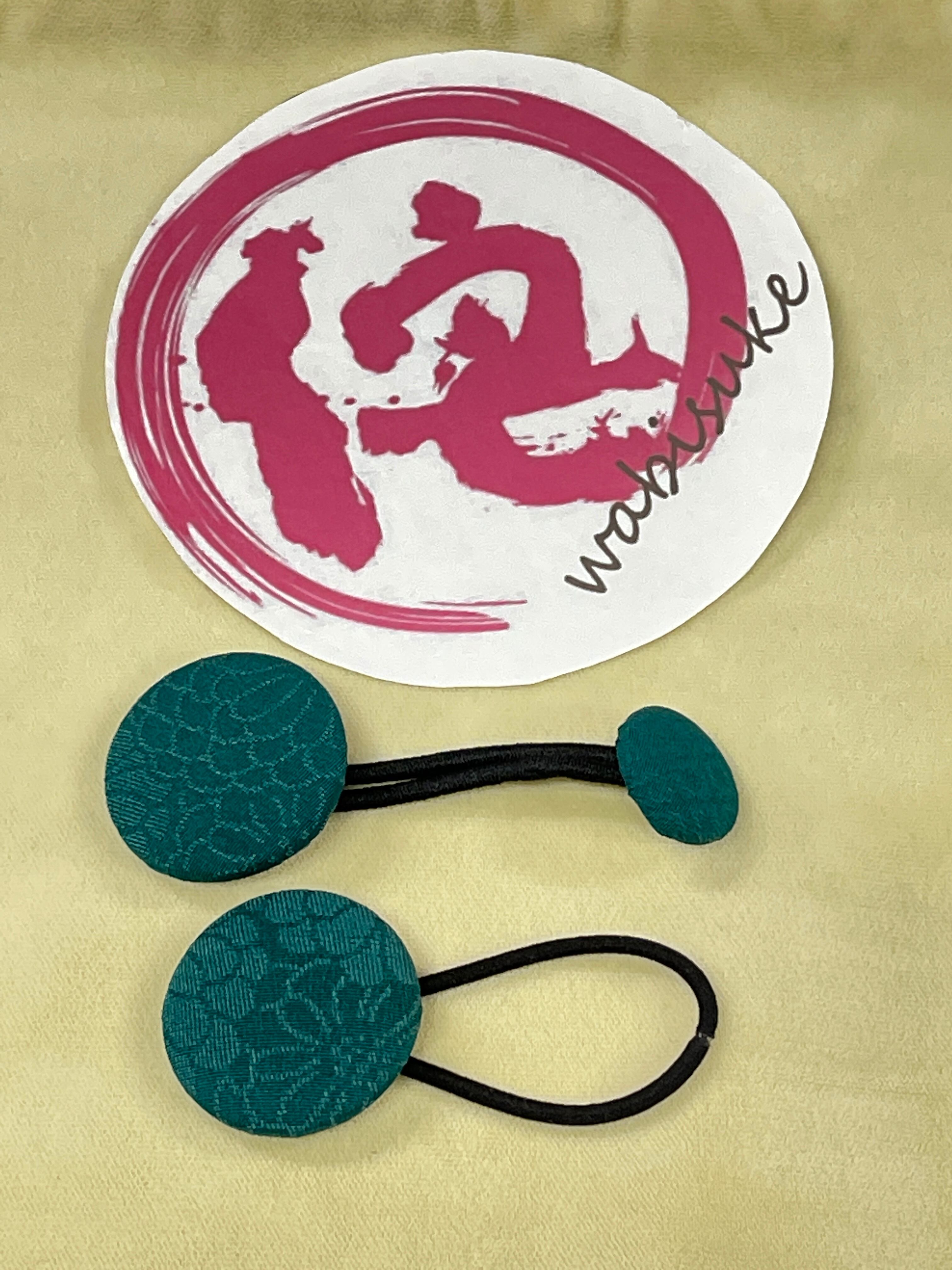 着物や浴衣、洋服生地のハギレを使ってくるみボタンを使ってヘアゴムを作りました。