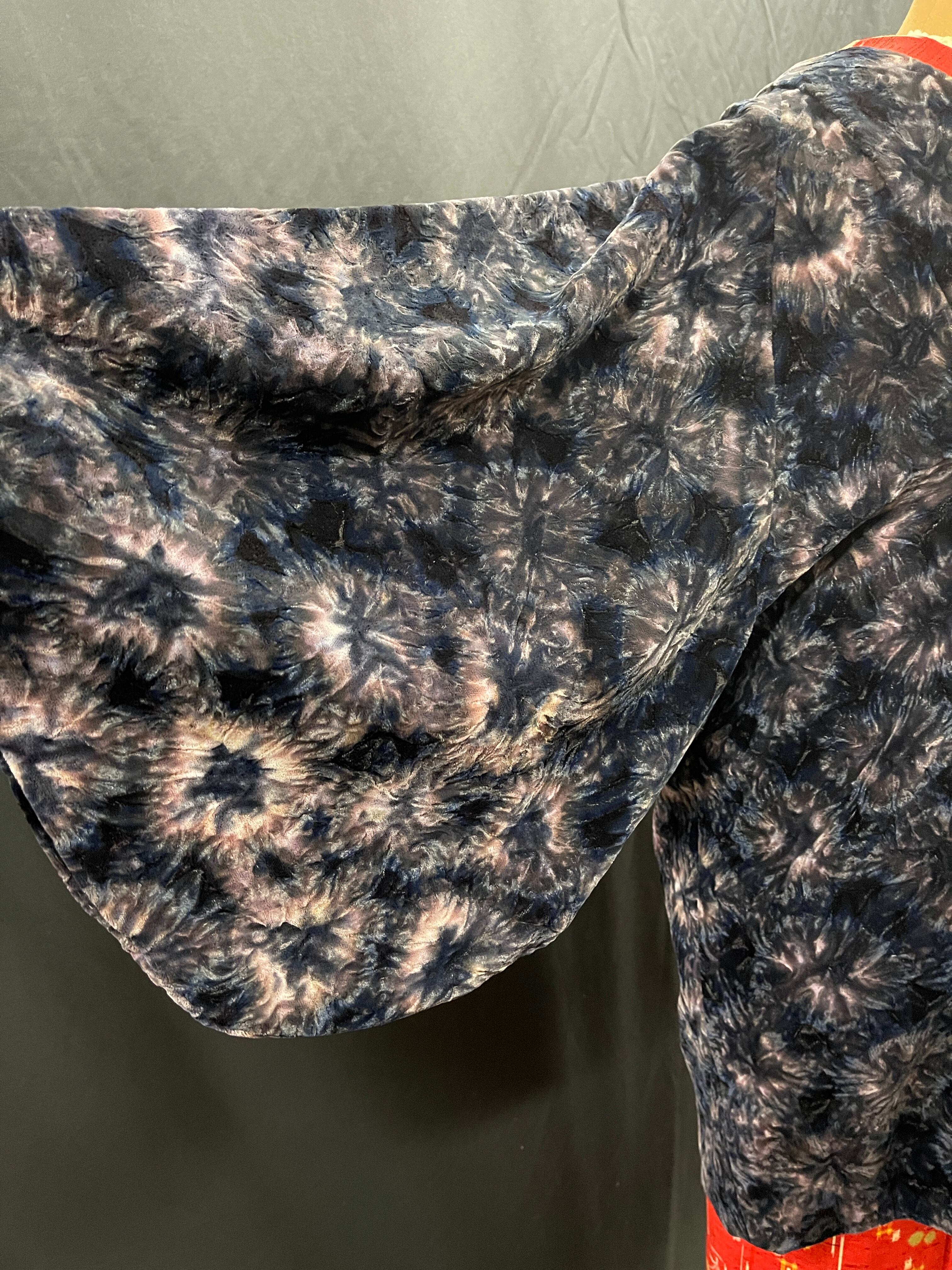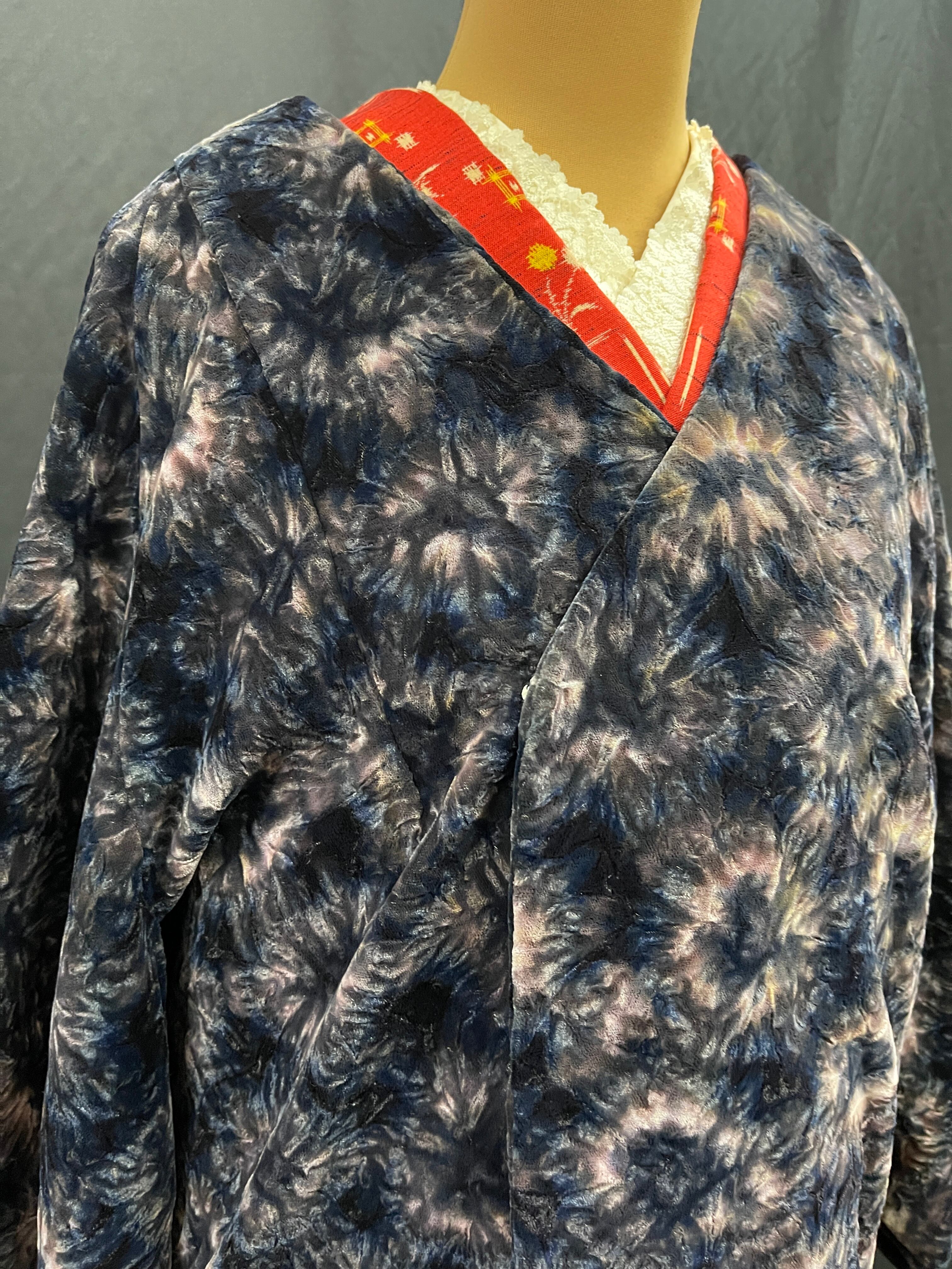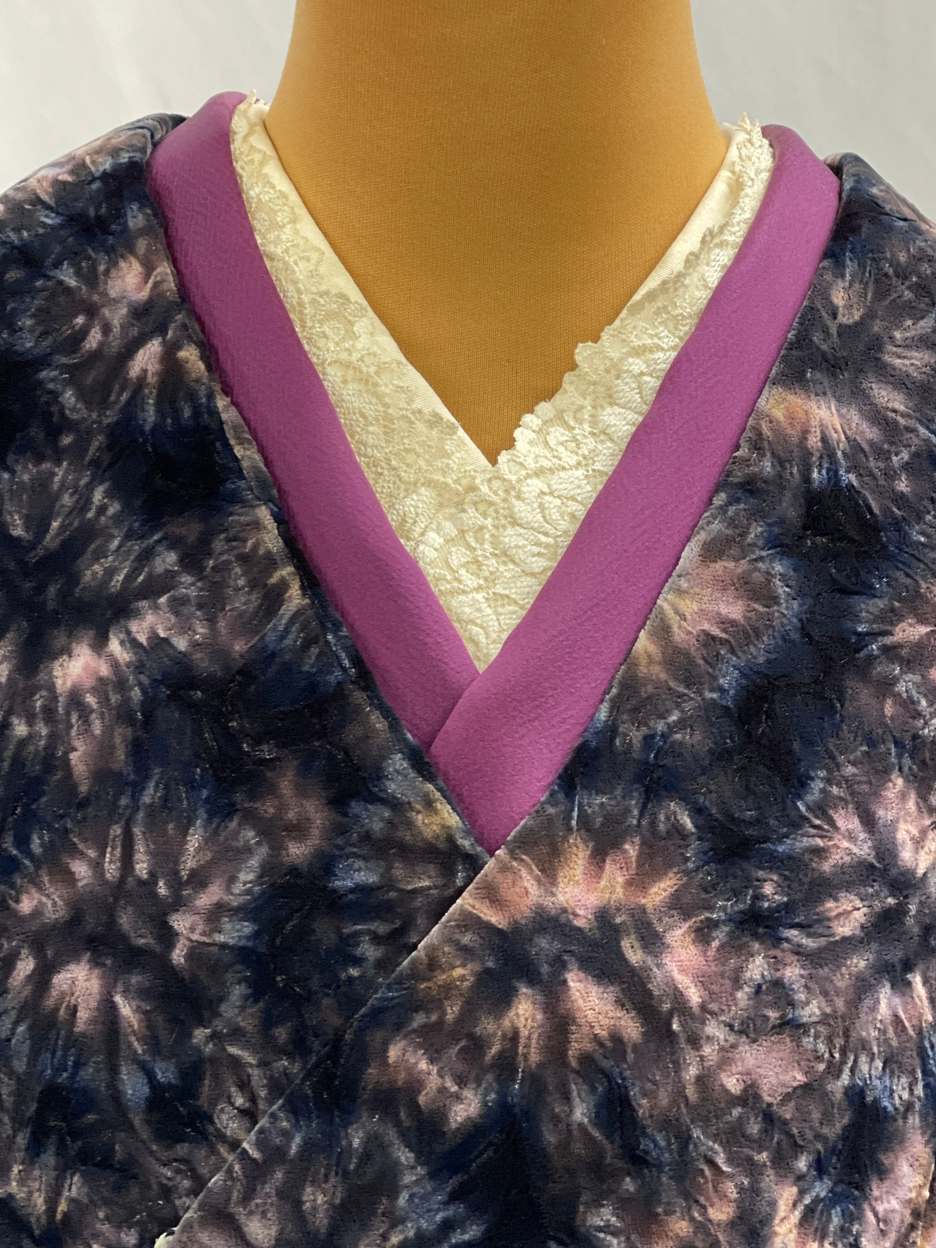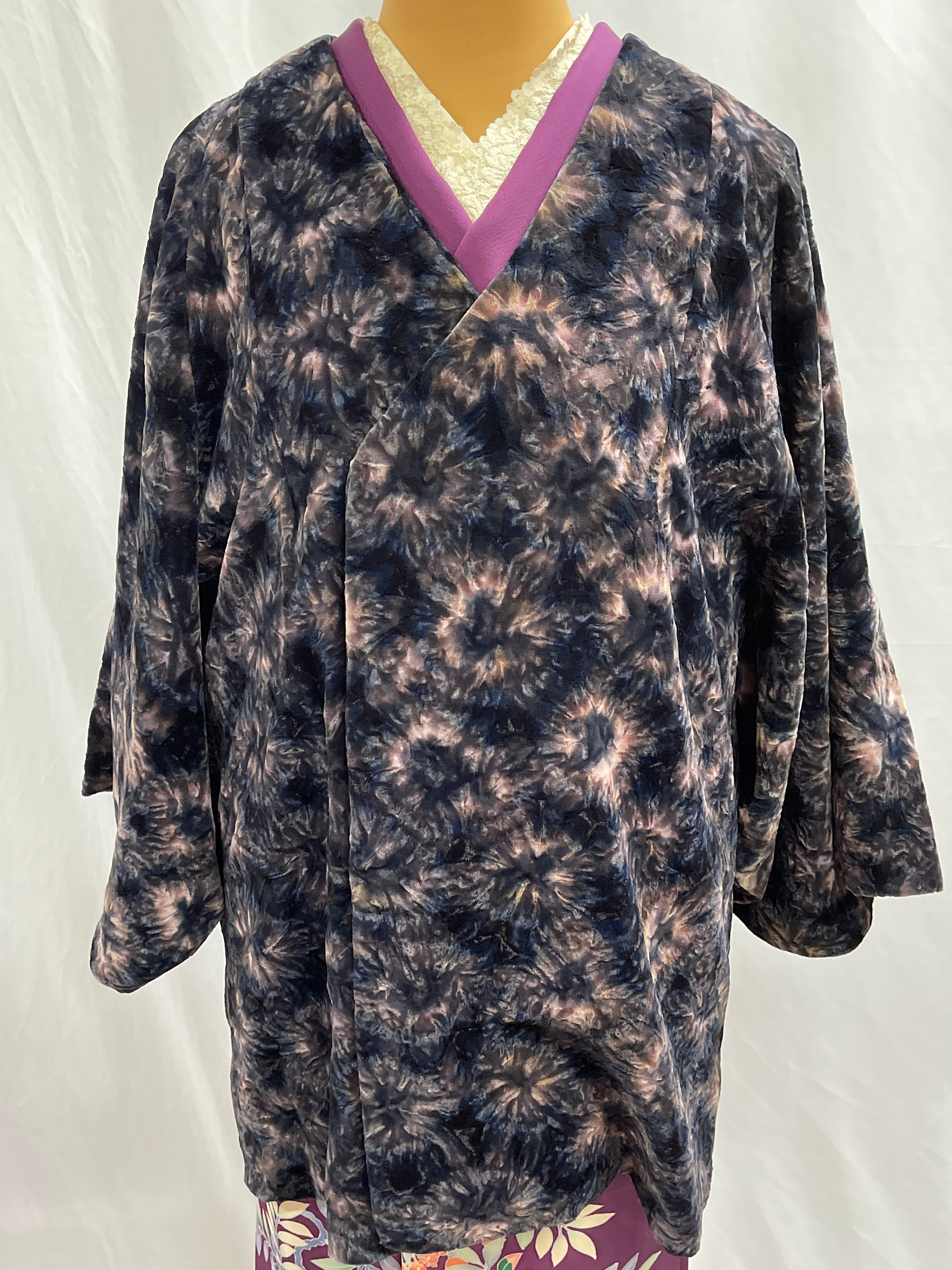 着物コート 和装コート ベルベット 総絞り 紫 ノーカラー 希少