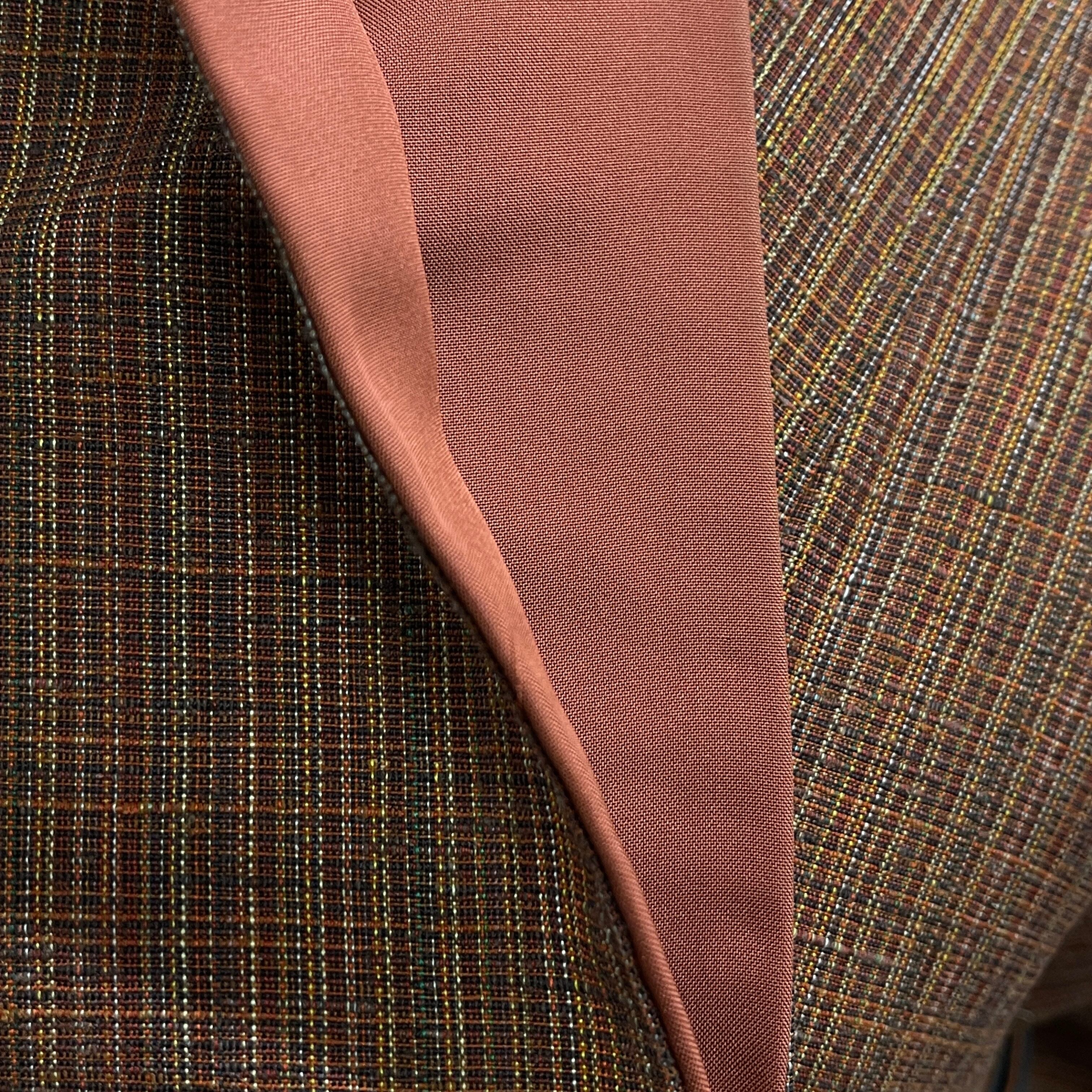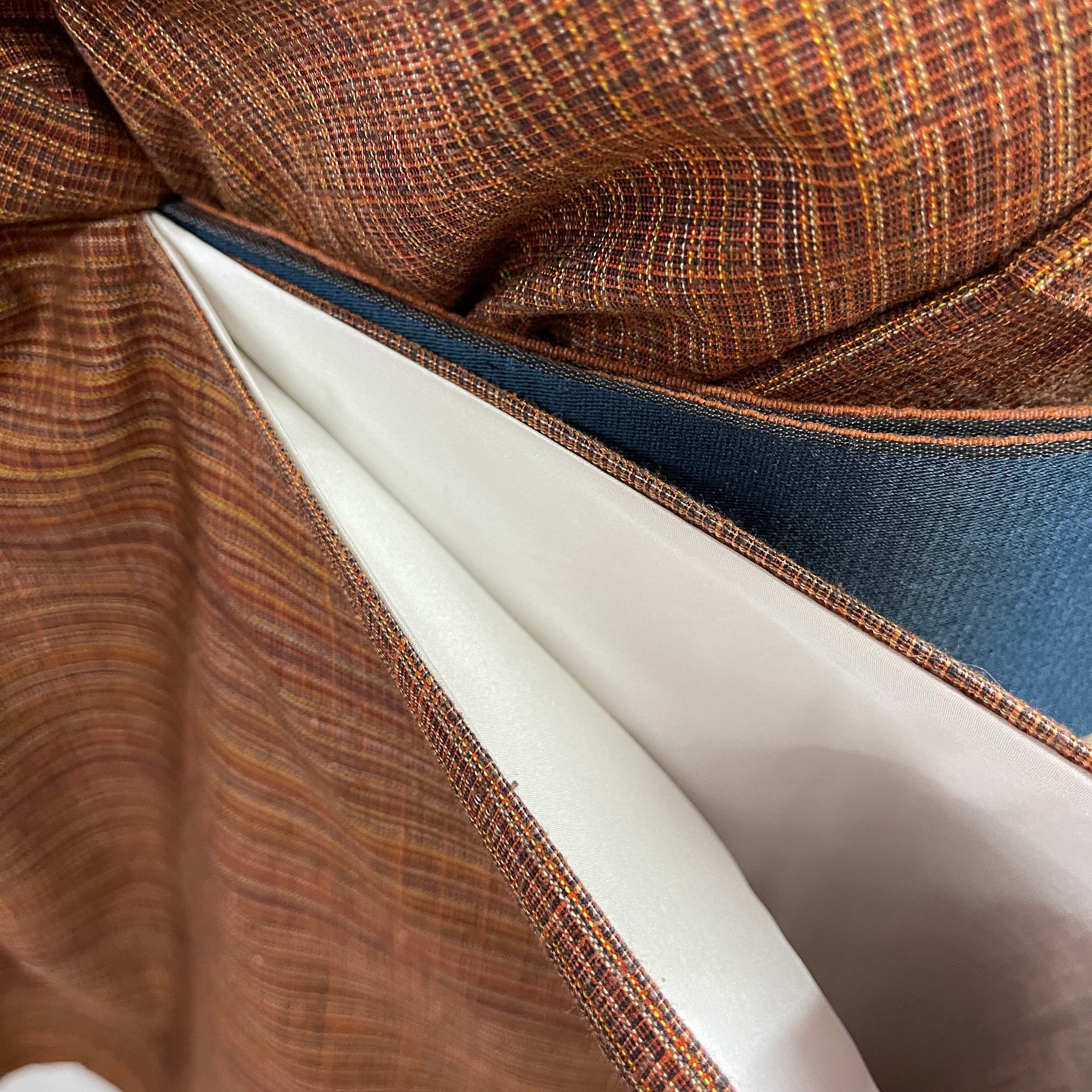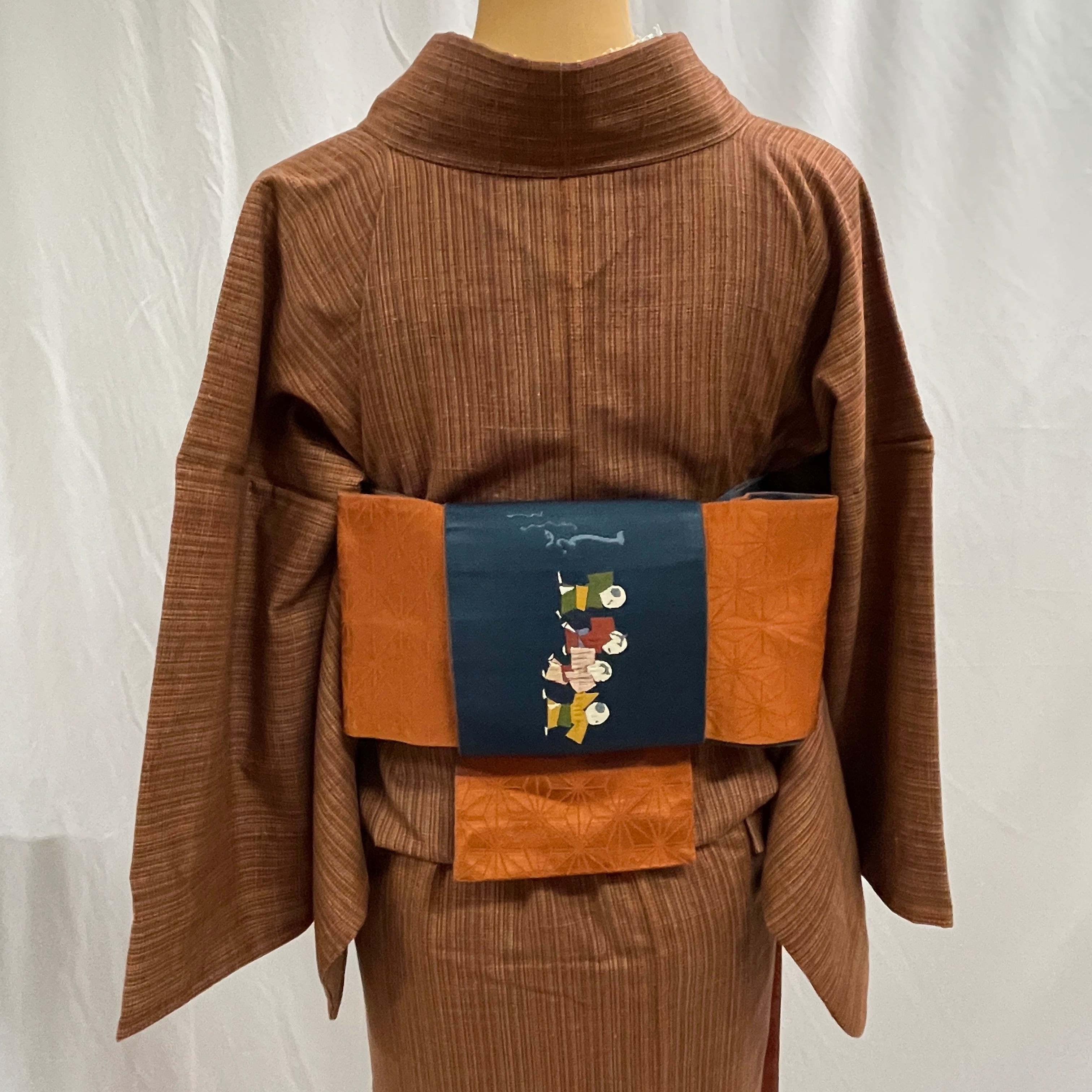 紬 茶系 マルチカラー 縞 裄65cm ゆったりサイズ 着物 普段着 カジュアル