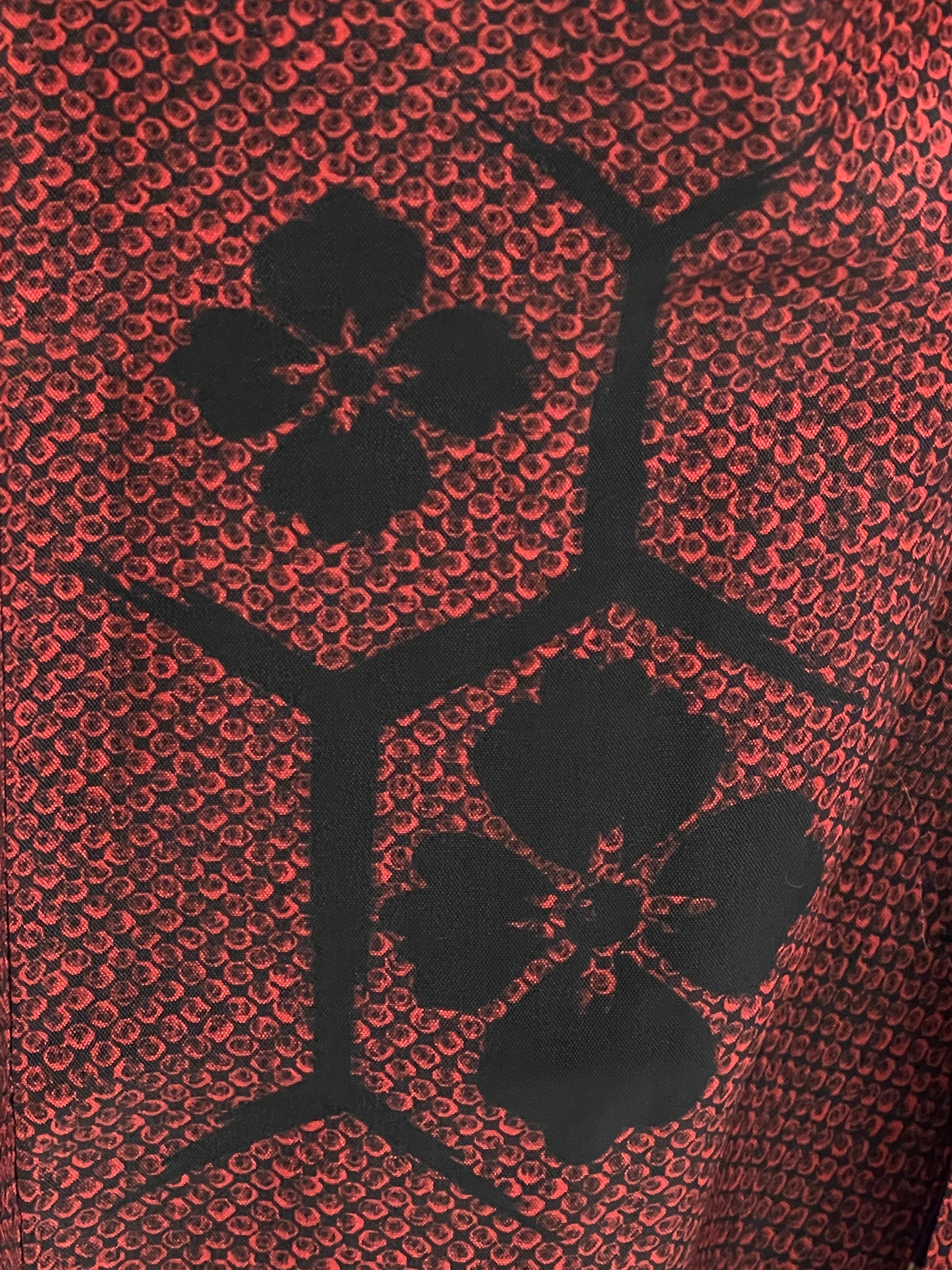 アンティーク羽織 長羽織 紬 赤地 黒 鹿の子 花紋亀甲
