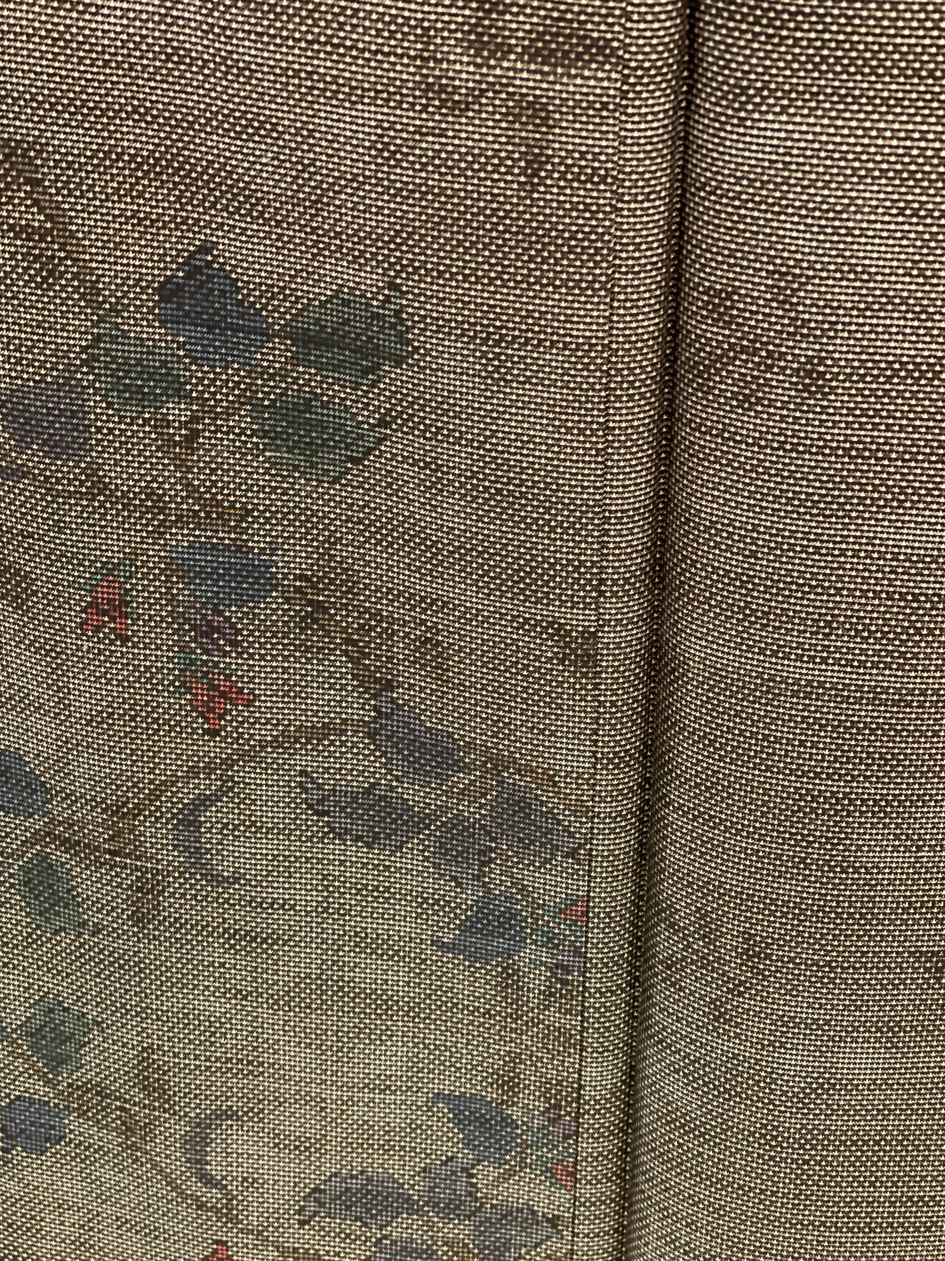大島紬 トールサイズ 茶系 枝付き 赤い花 証紙 本場奄美大島