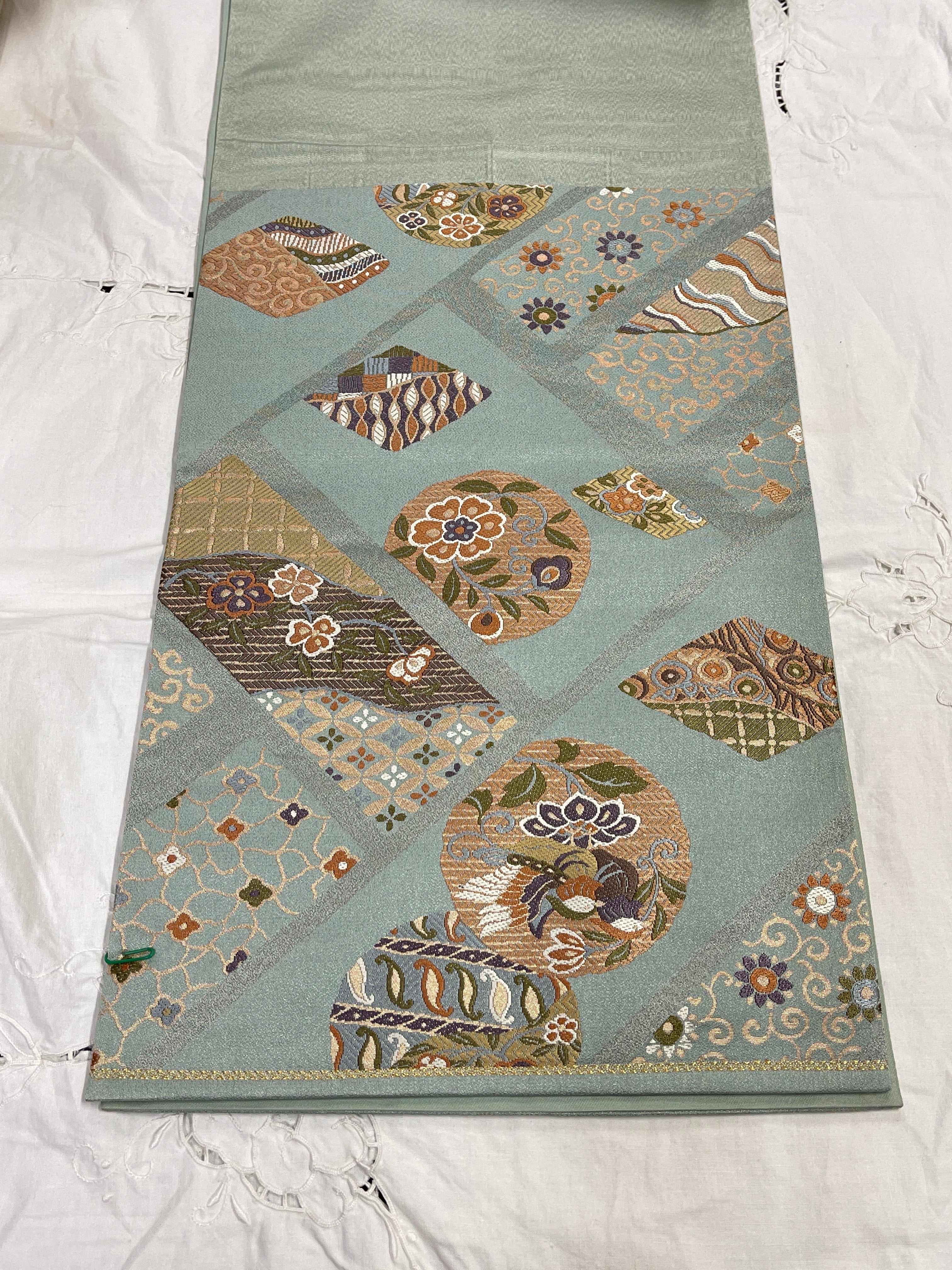 袋帯 ブルーグレー 金糸 銀糸 吉祥文様 おしどり 上品 フォーマル お茶席
