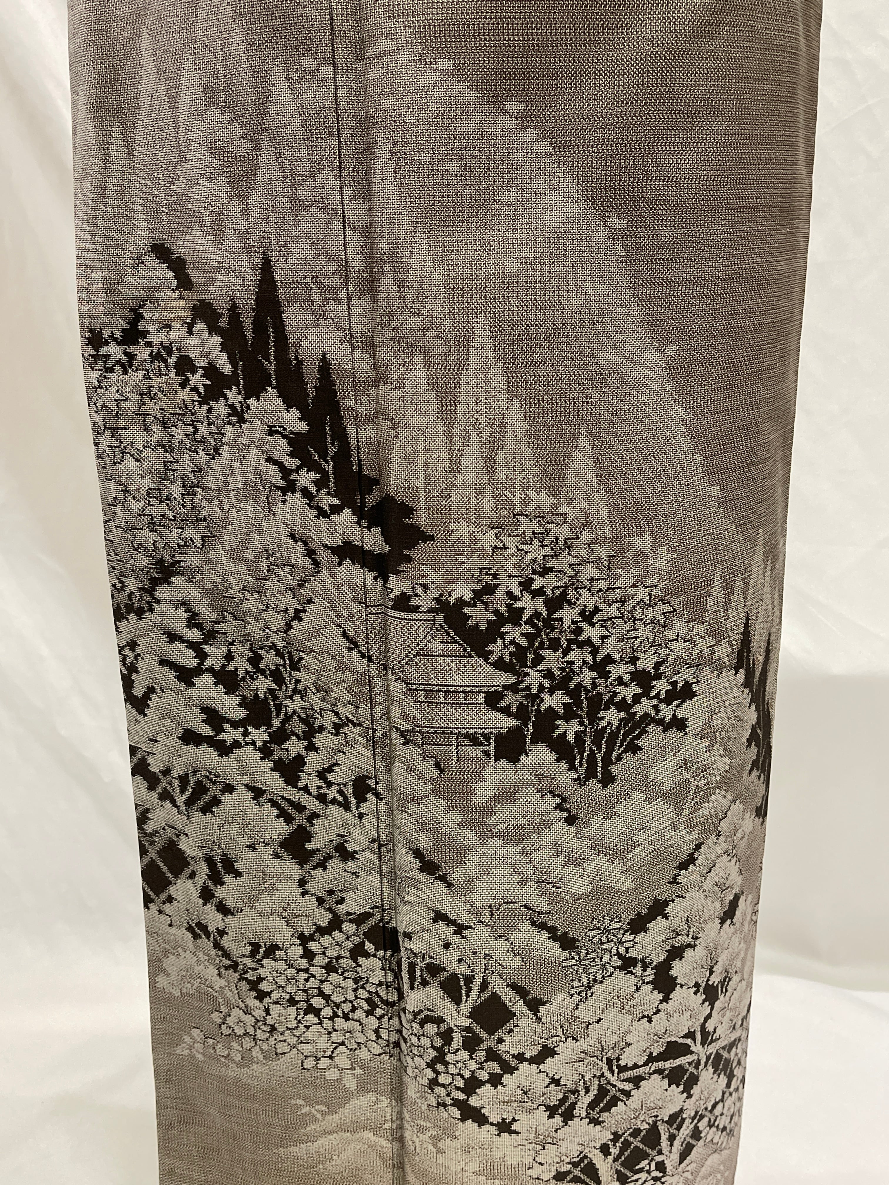 訪問着 紬 逸品 トールサイズ 泥染め グレー系 山景 観劇 パーティーおしゃれ着