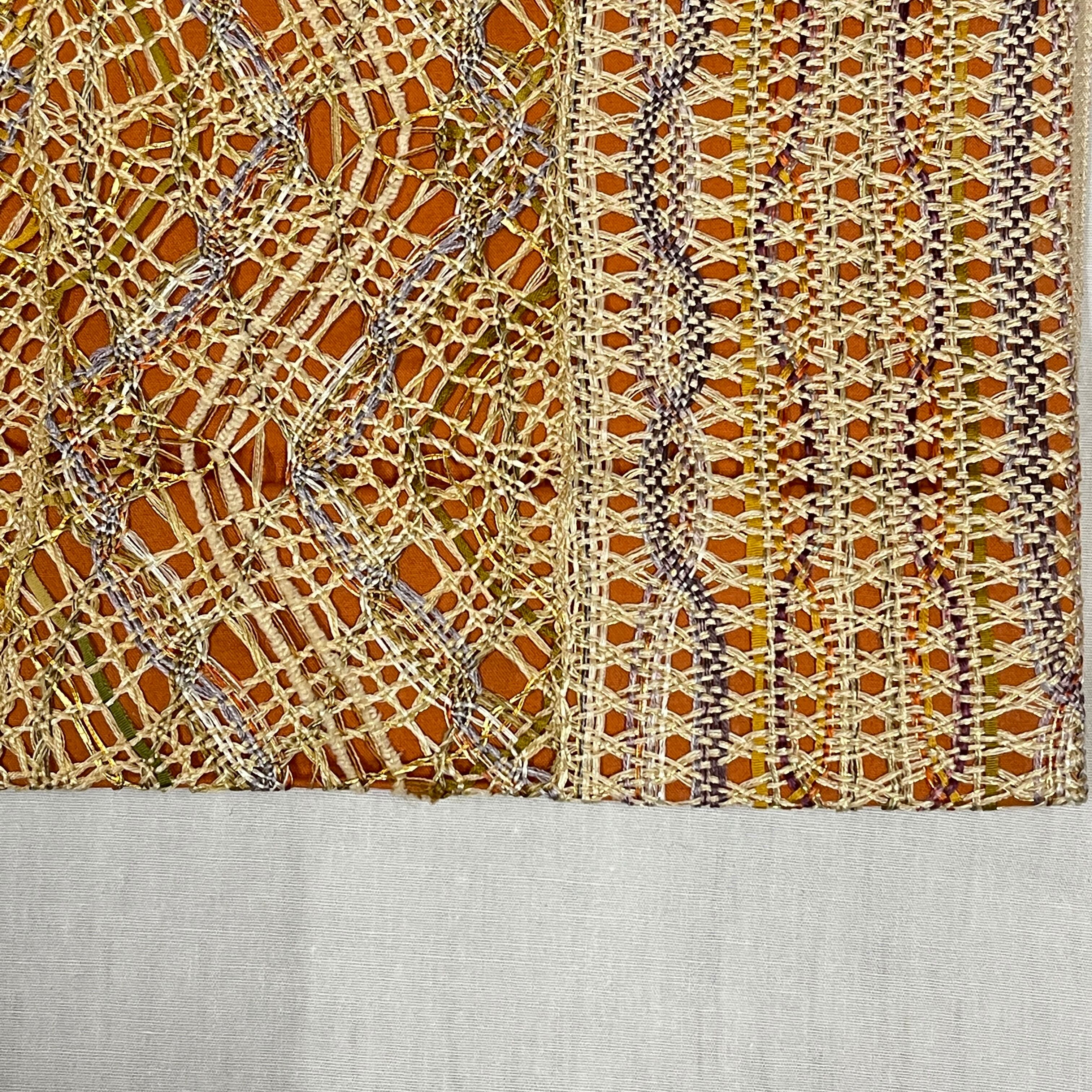 袋帯 全通 レース帯 ベージュ系 金糸 スリーシーズンOK 日常着 セミフォーマル