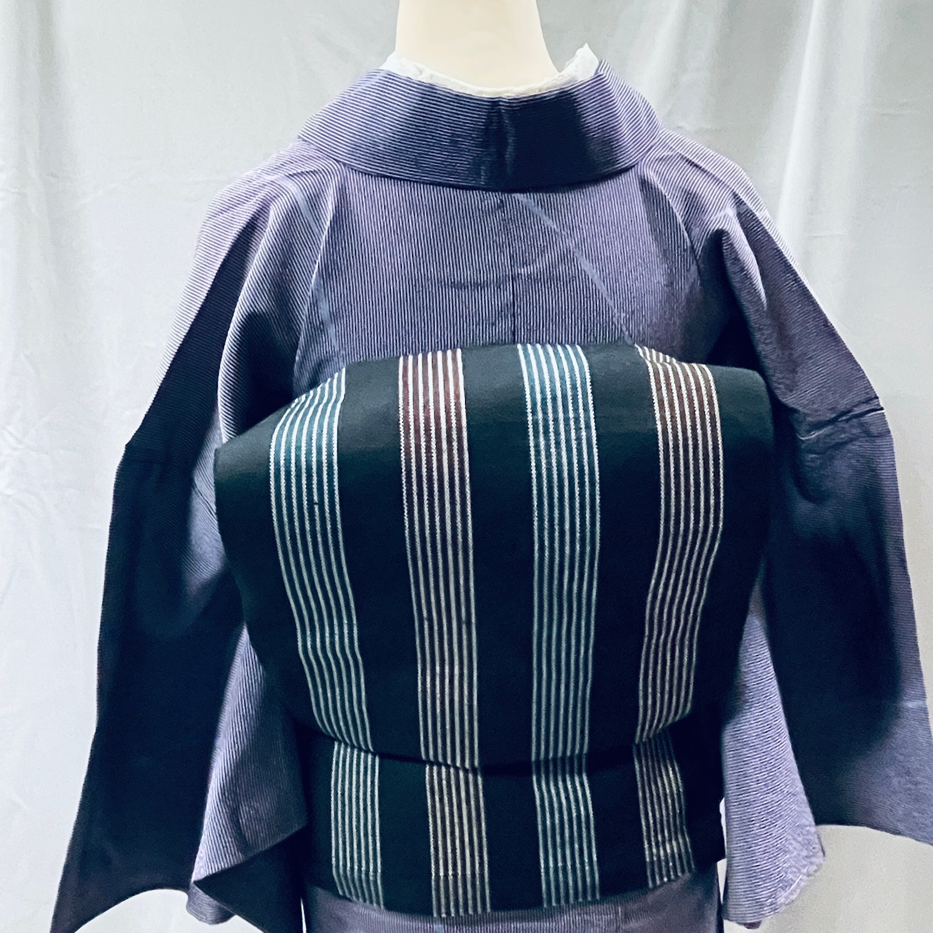 単帯 黒地 縞 日常着 カジュアル 普段着 クール