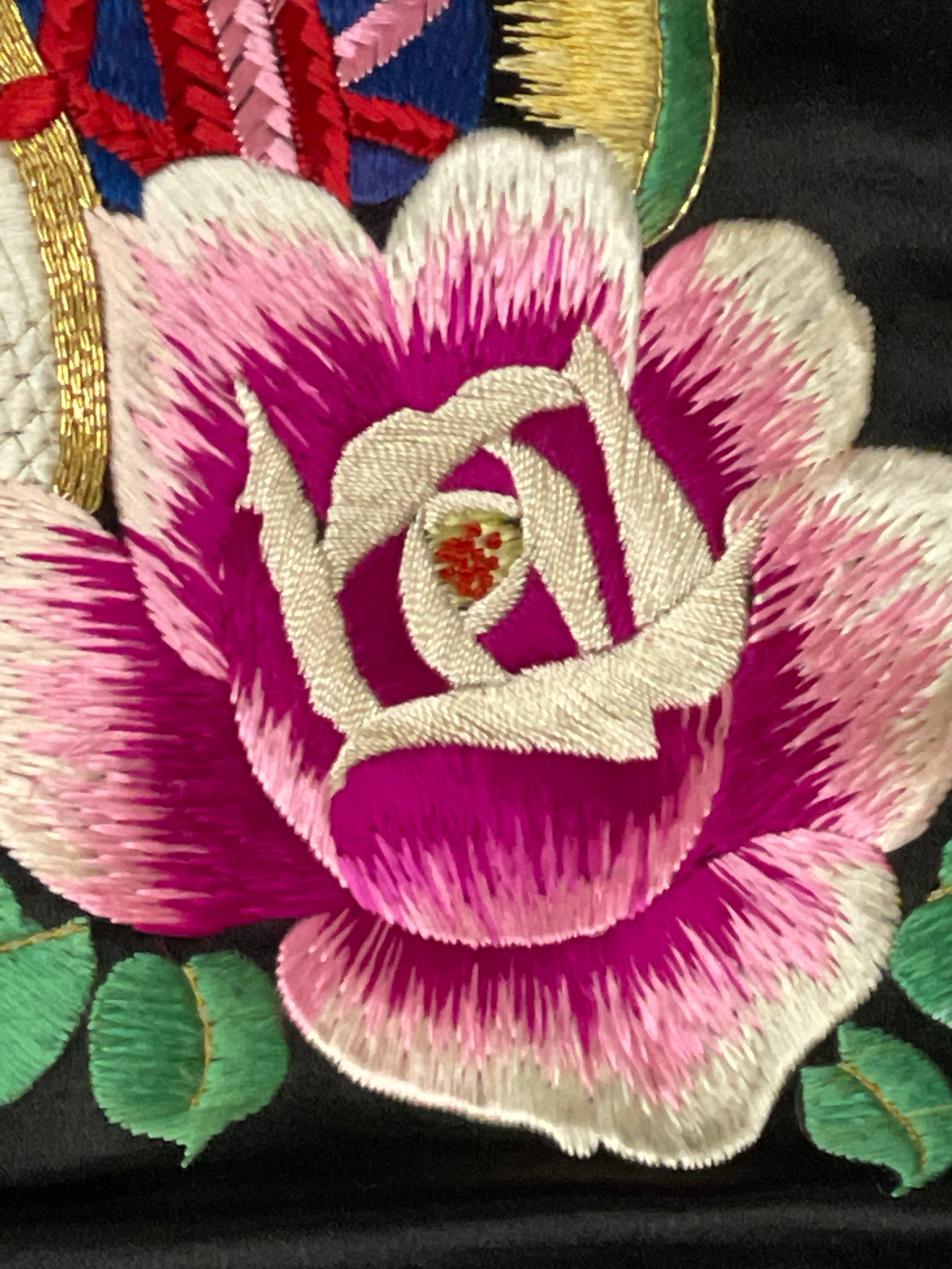 アンティーク帯 名古屋帯 九寸名古屋帯 繻子 刺繍 鼓 バラ 薔薇