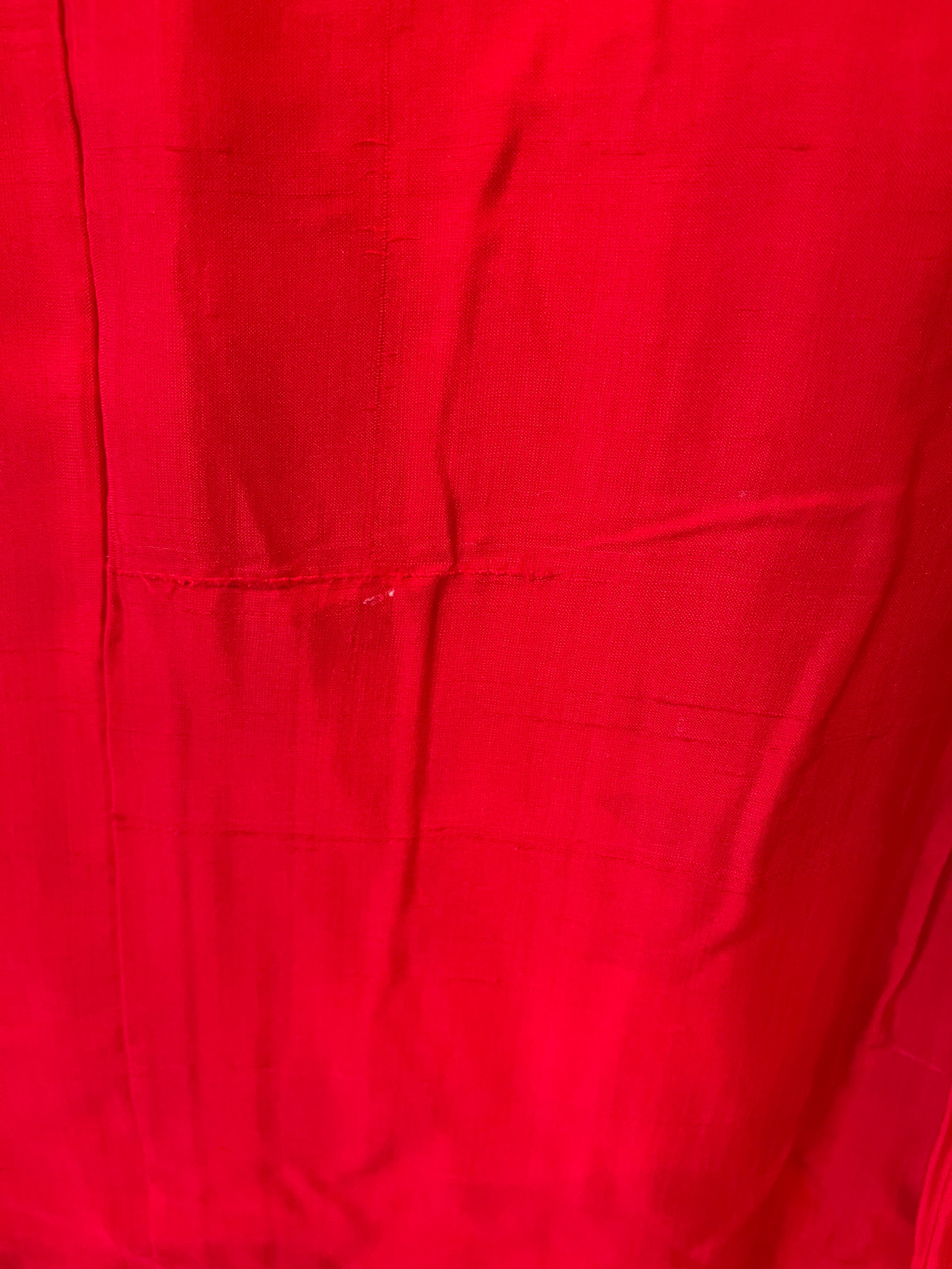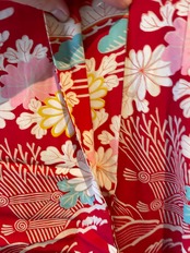 アンティーク長襦袢 赤系 型染め 四季の花 広衿 袖丈67cm 紅絹