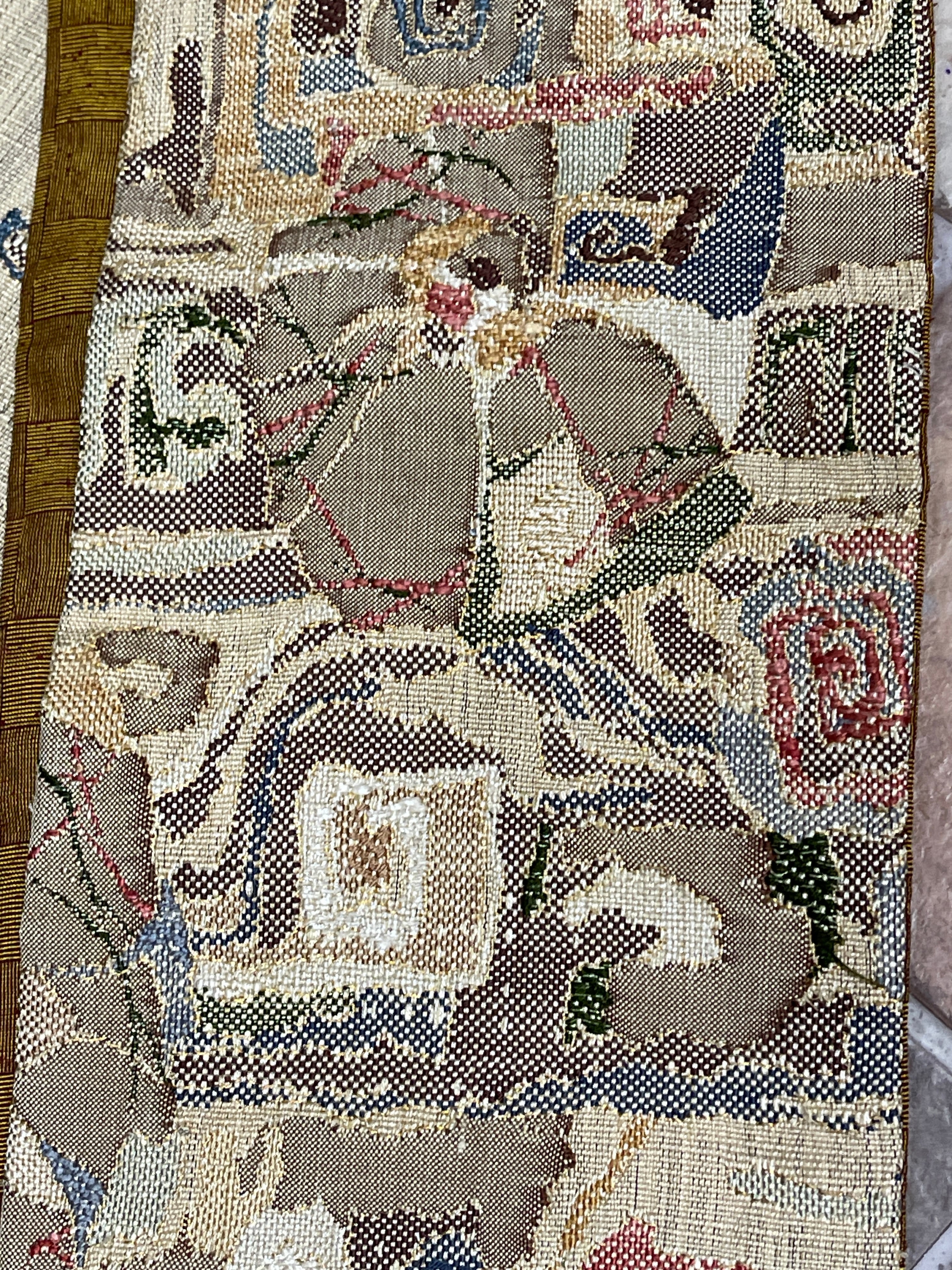 半幅帯 オリジナル半幅帯 リメイク帯 紬帯 ベージュ系 パステルカラー モダン柄 普段着 カジュアル