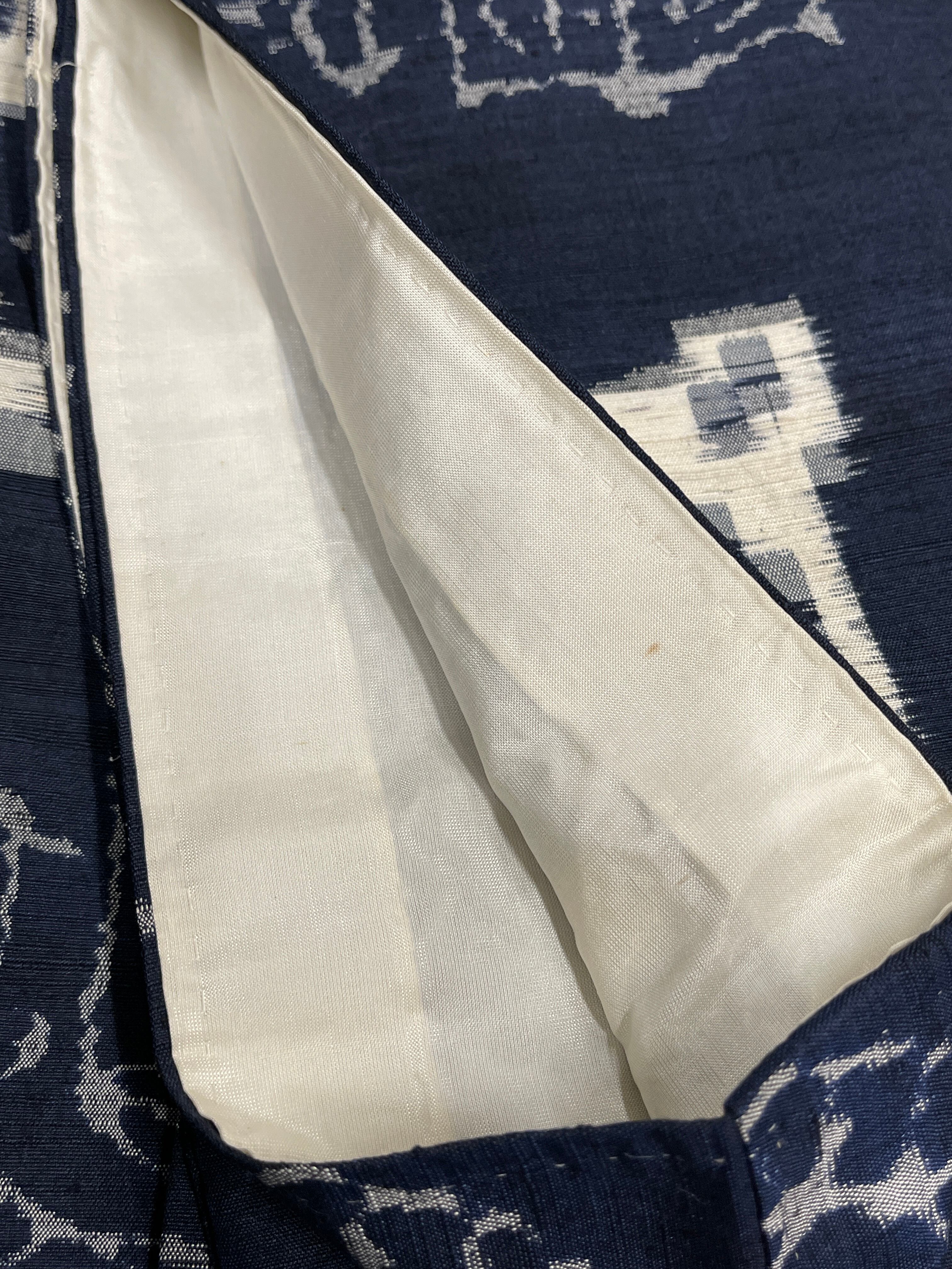 紬 紺地 白 グレー 絣織り 普段着 お稽古 カジュアル