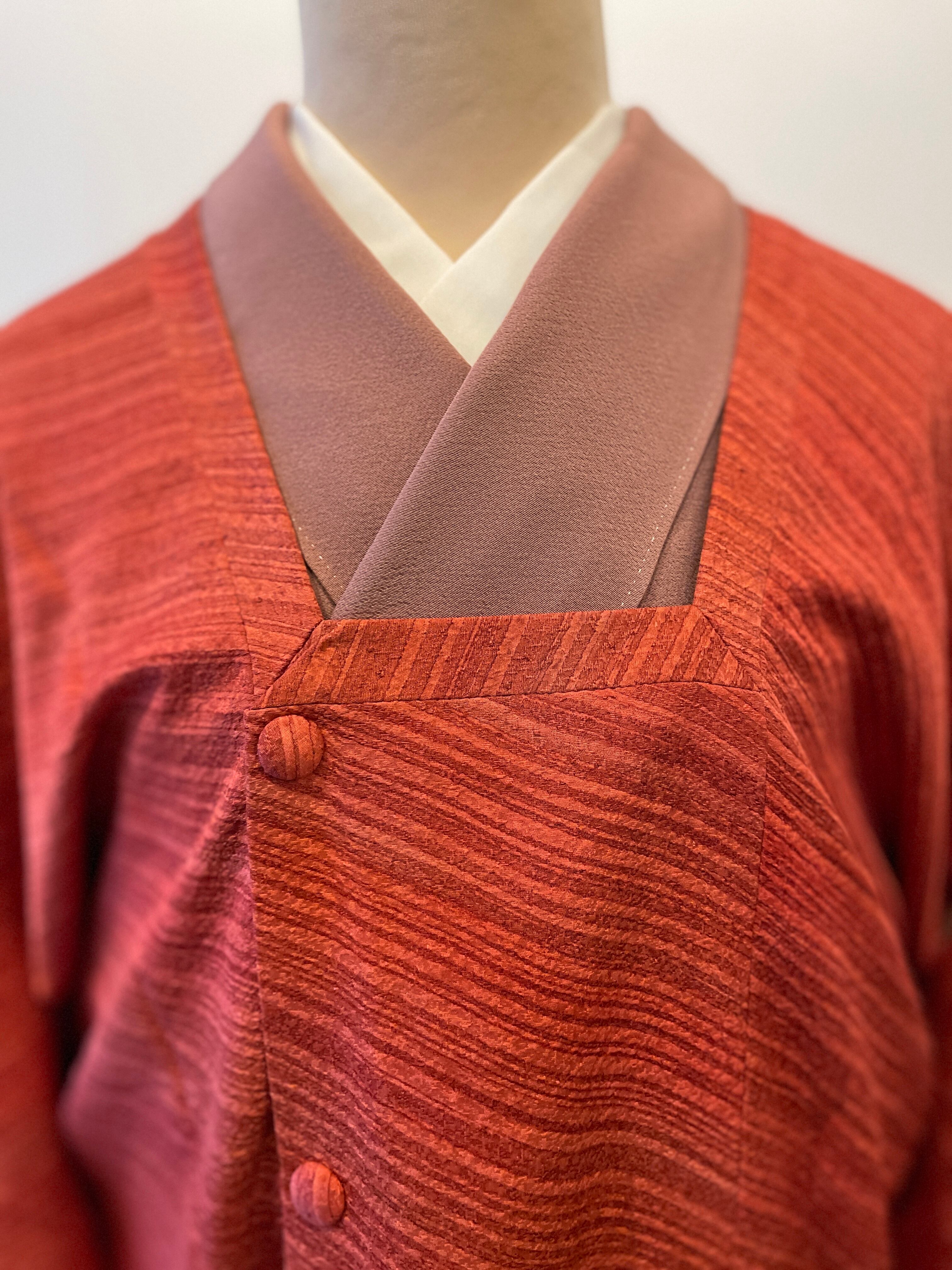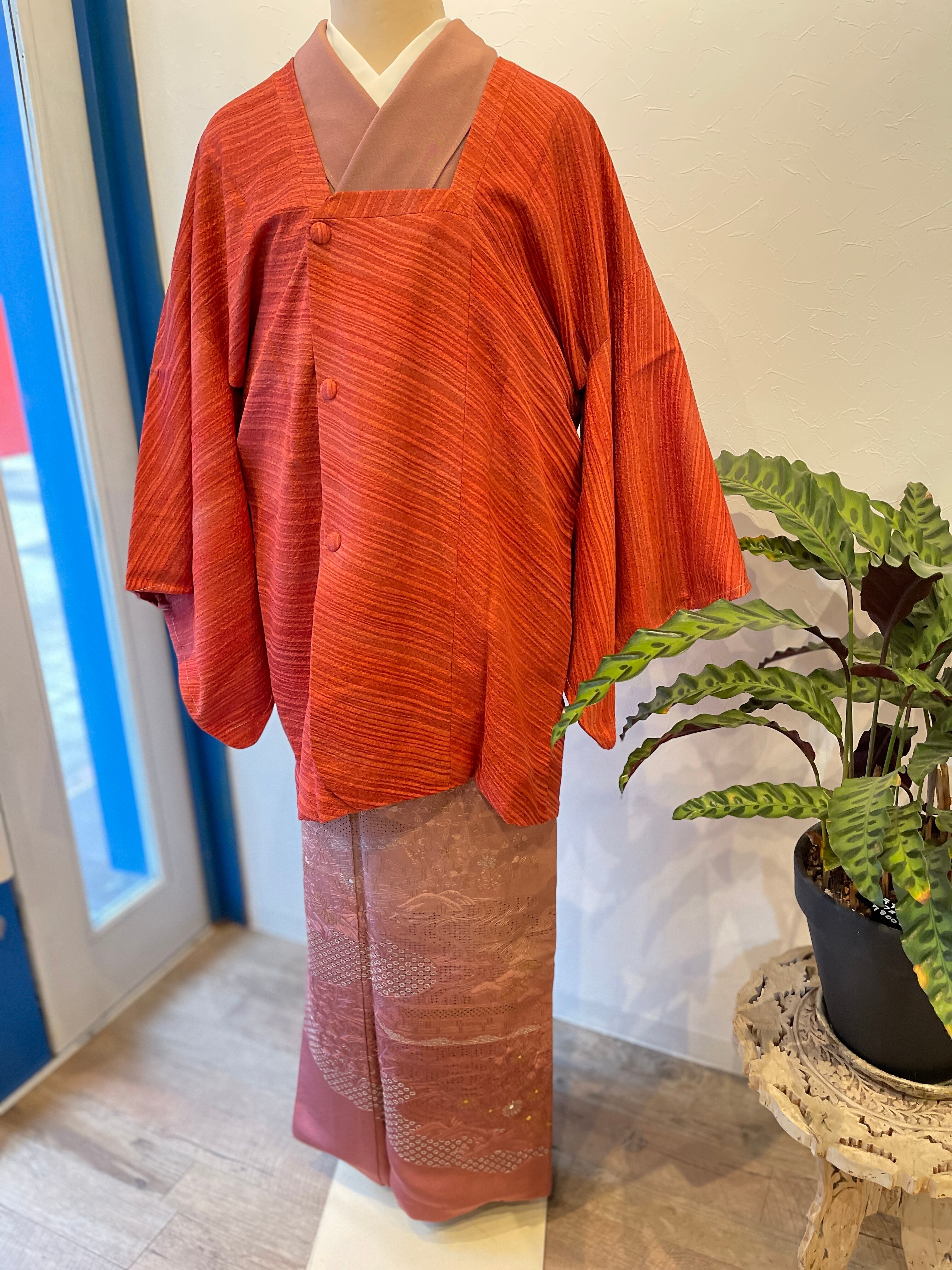道行 赤系 赤グラデーション かわり織り 斜線 羽織物 ちりよけ カジュアル セミフォーマル