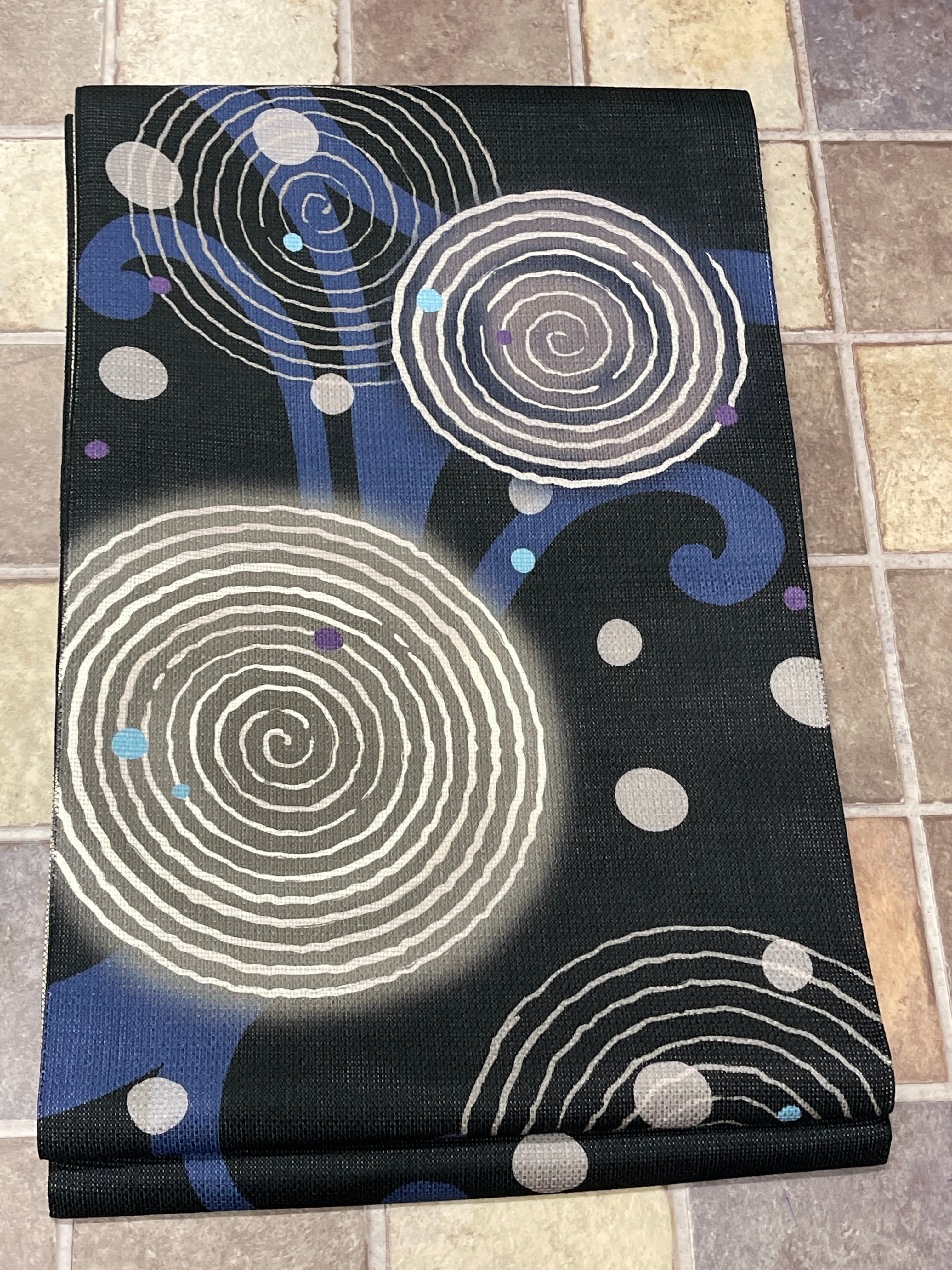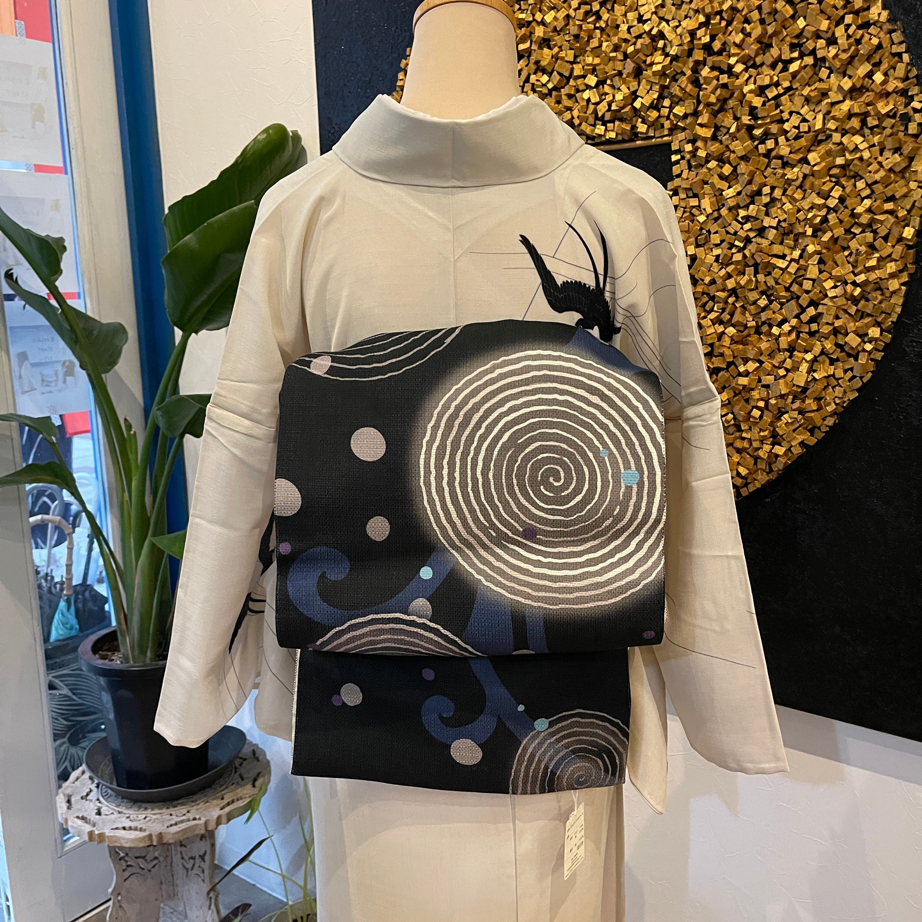 京袋帯 WA•KKA ワッカ 夏帯 黒地 水面 水玉 カジュアル 新品 未使用