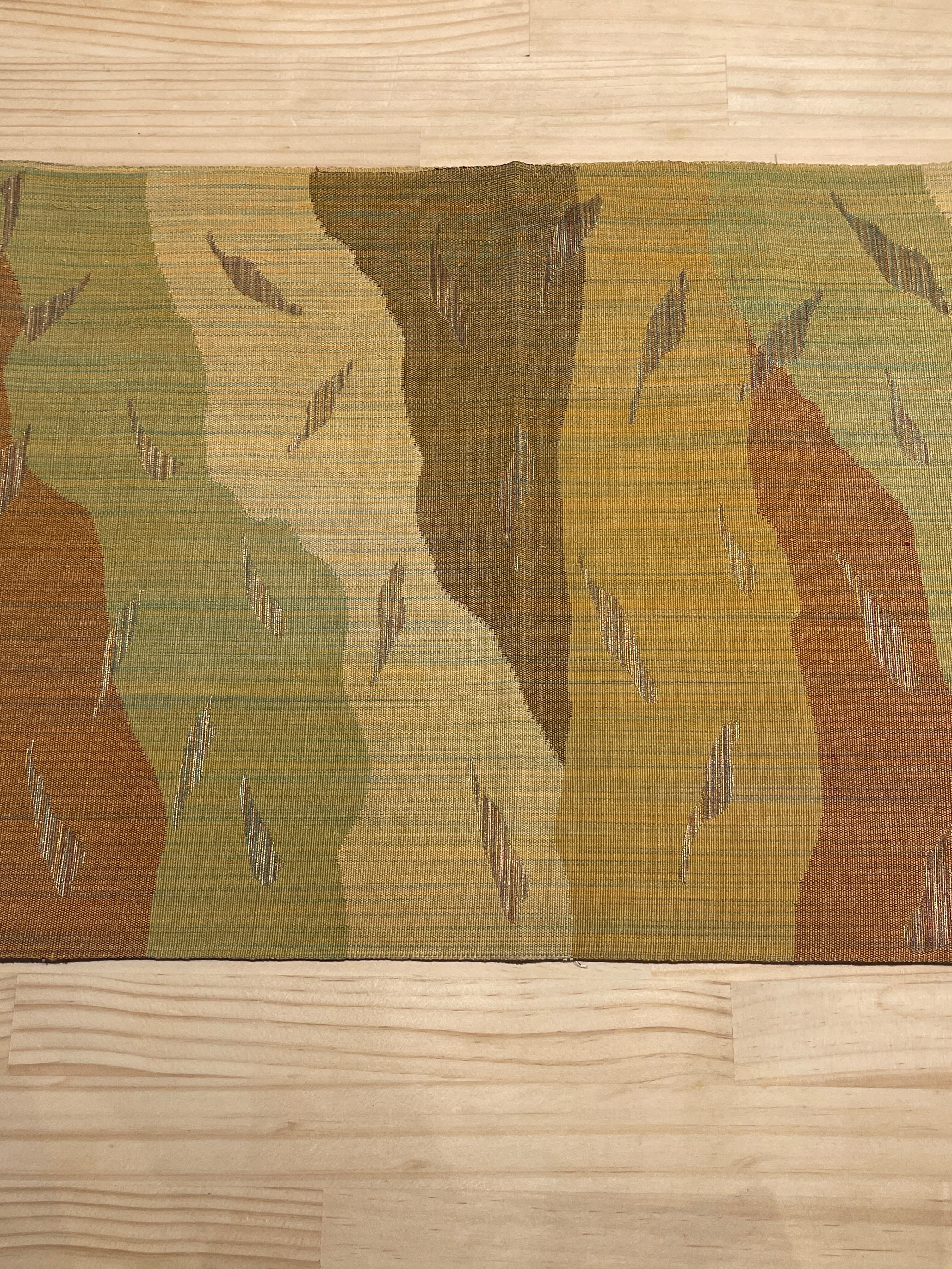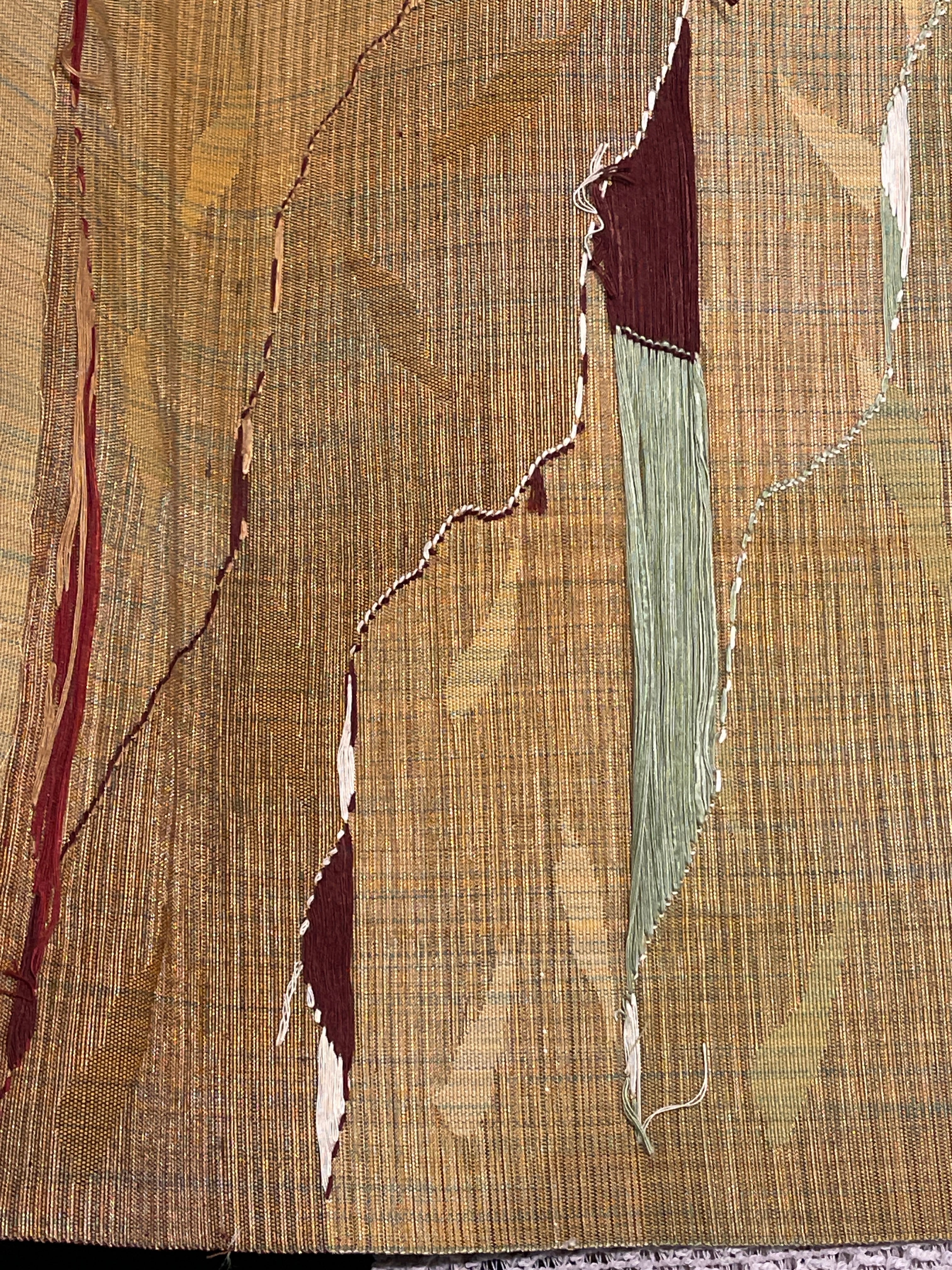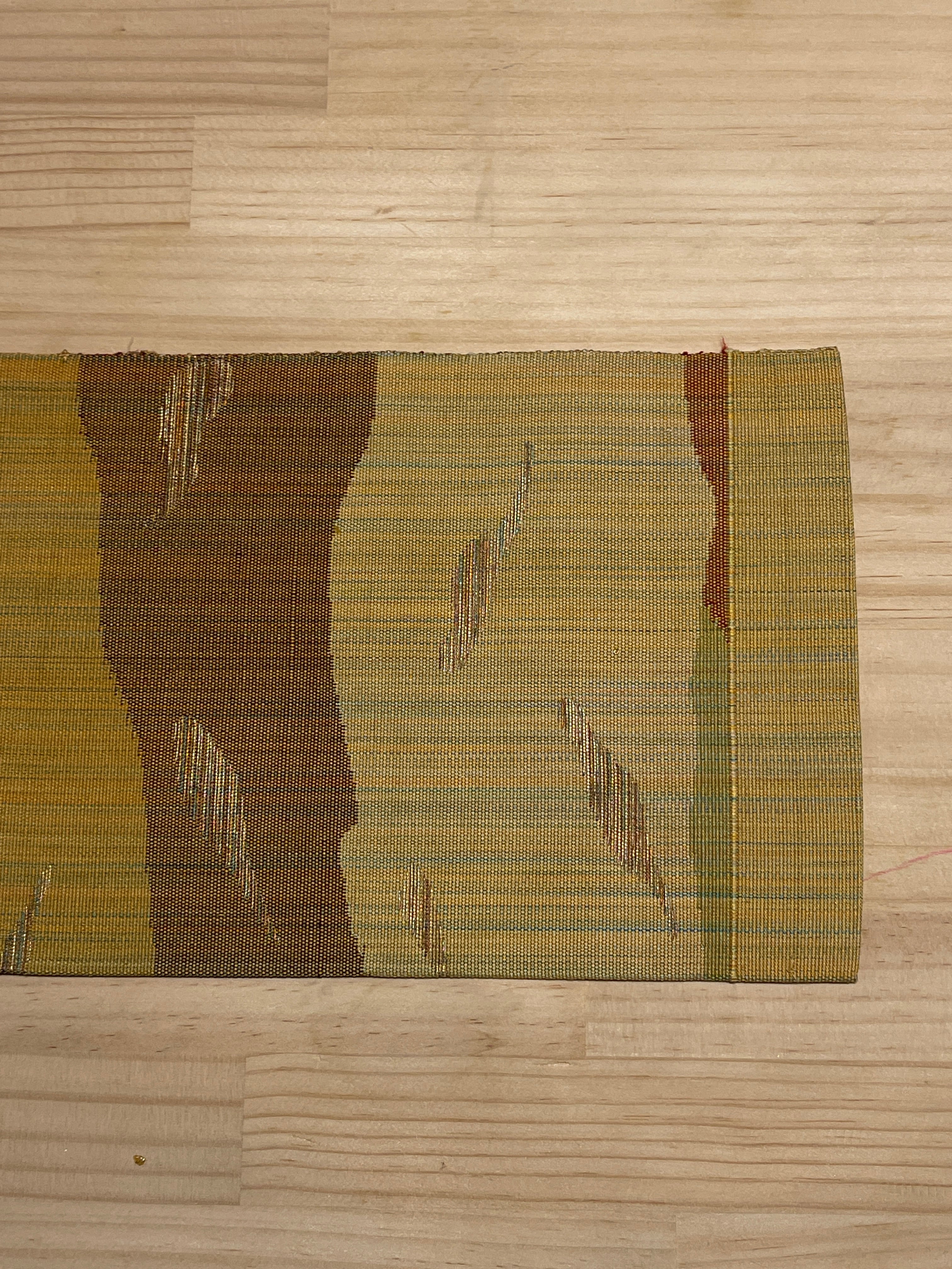 シンプルですが、葉っぱのように見える模様には、金糸が織り込まれていて、光が当たるとキラキラ光ります。