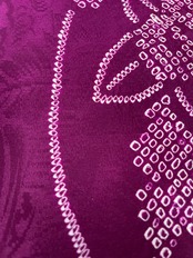 素晴らしあっ帆船の地模様に絞りの花、金糸銀糸でラメに光る霞雲が華やかに見せてくれます。