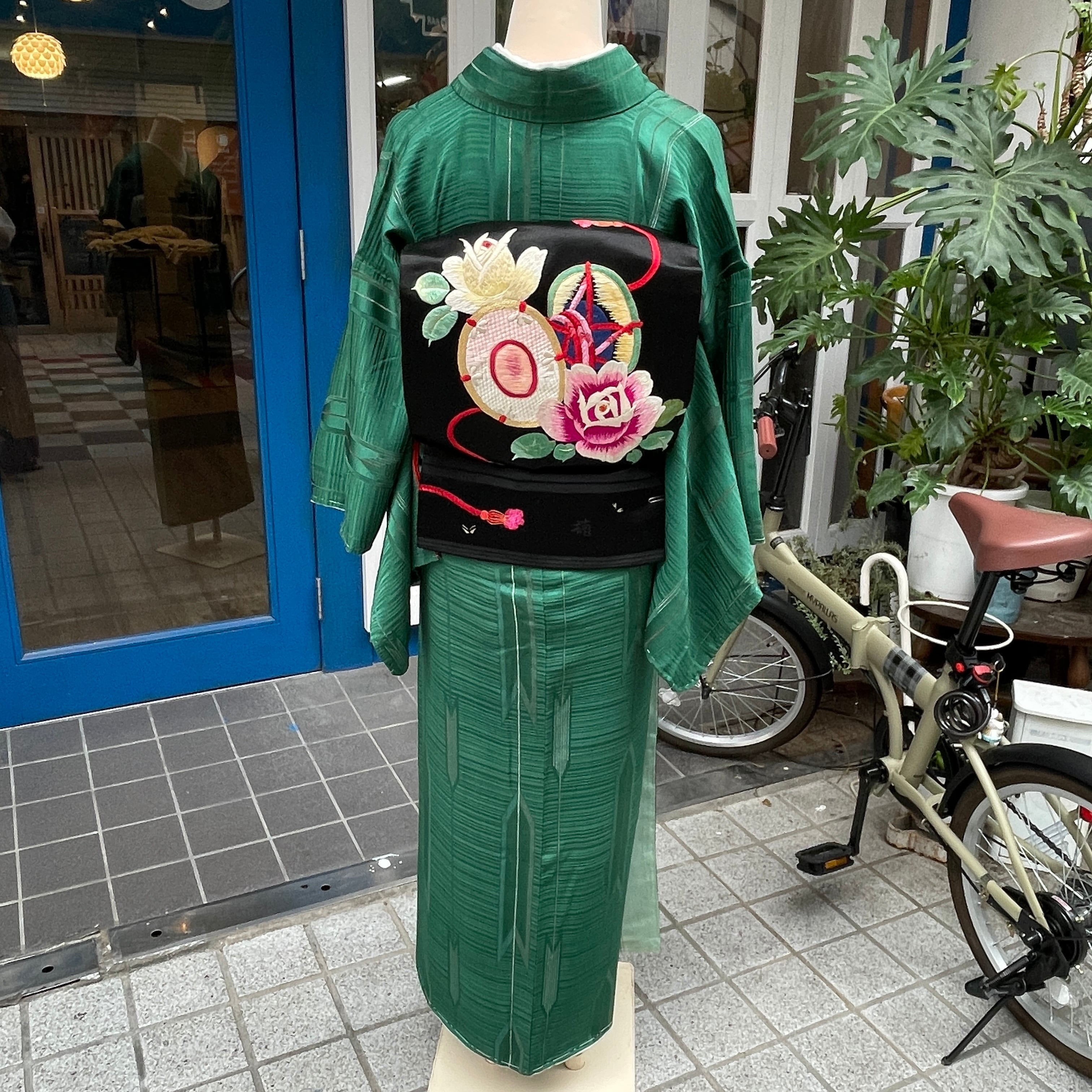アンティーク帯 九寸名古屋帯 総刺繍 つづみ 薔薇 コレクション