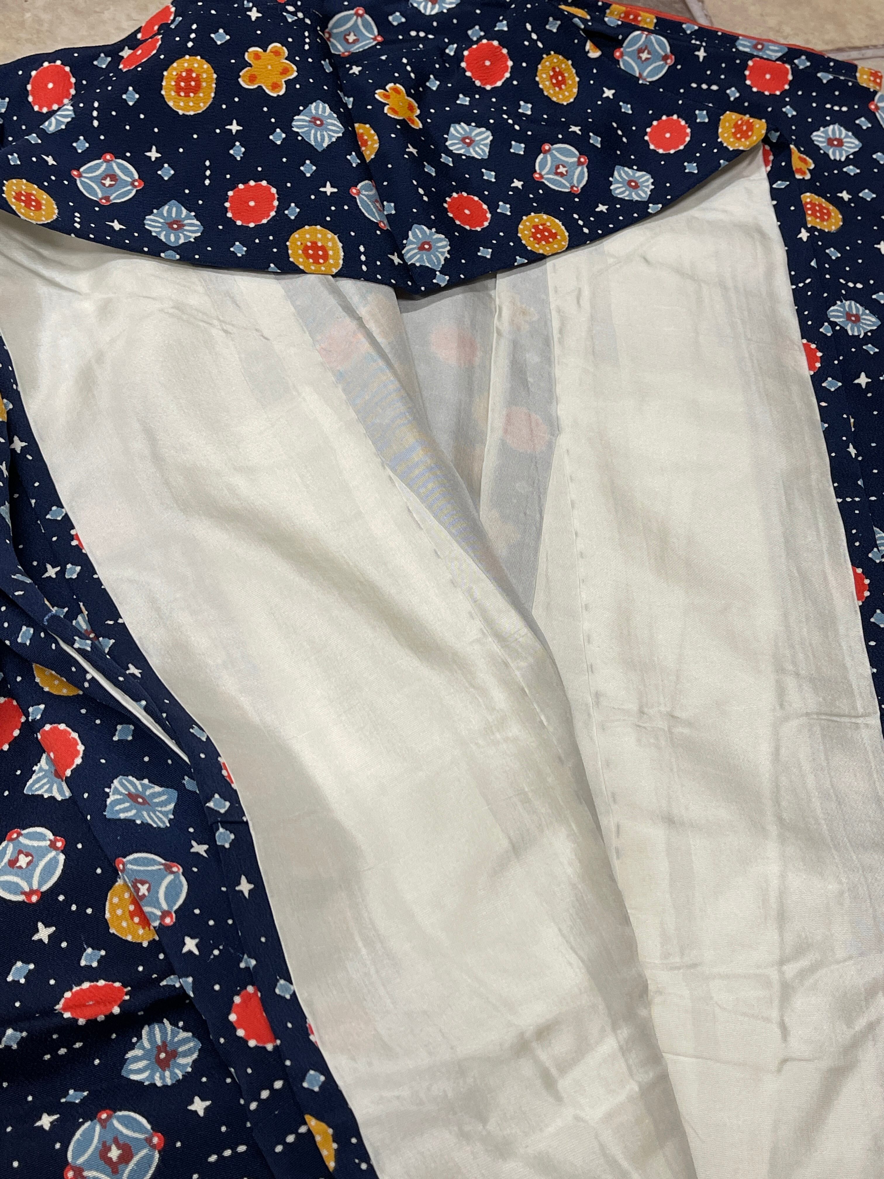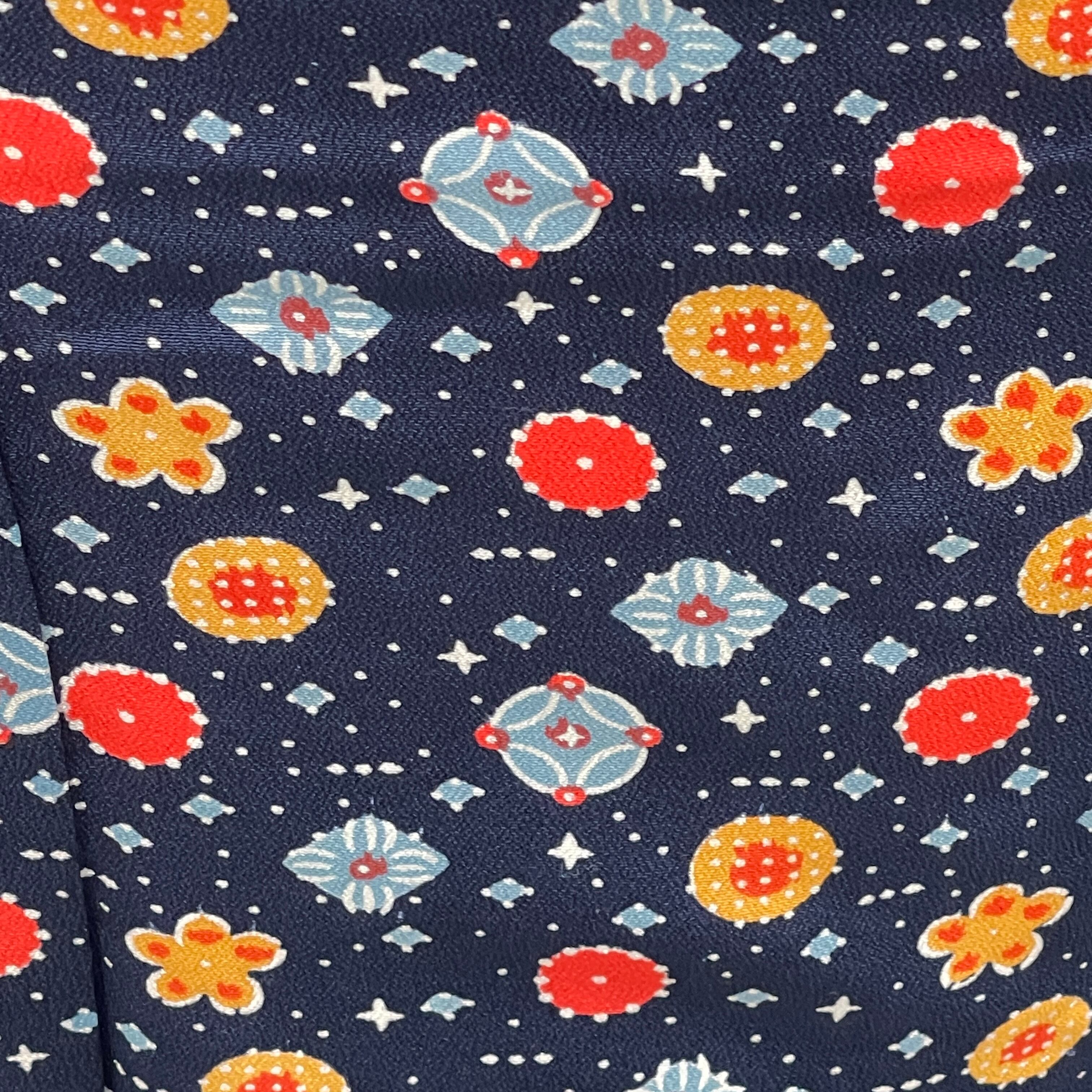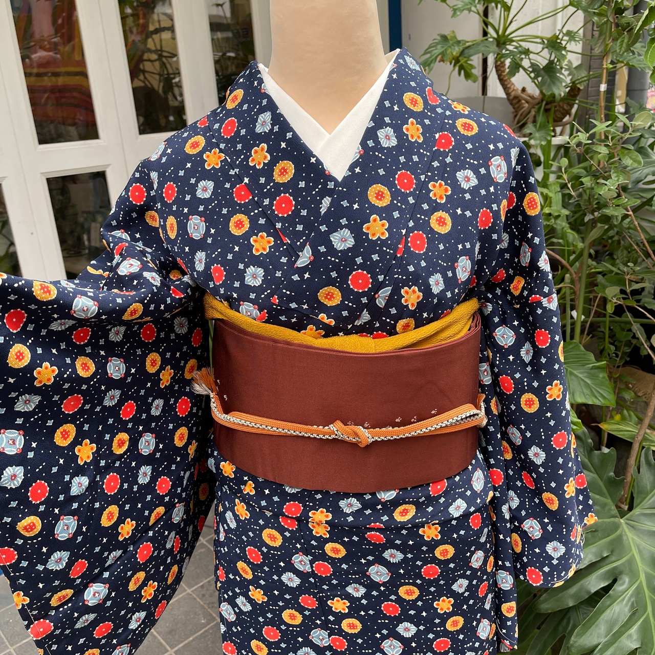 小紋 新品 紺地 水玉 丸 花 カジュアル 普段着 お稽古