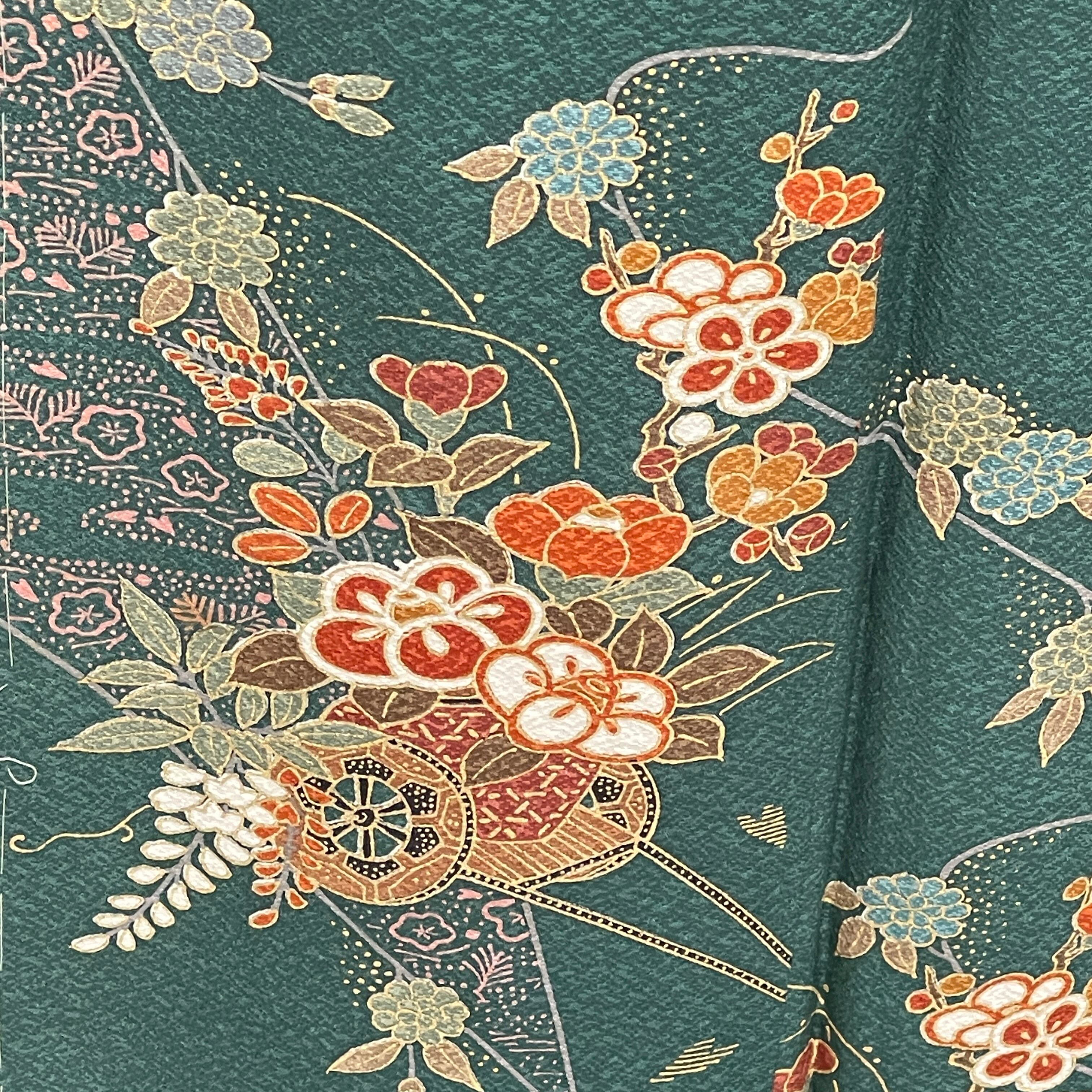 小紋 グリーン系 モスグリーン 花車 やまと誂製