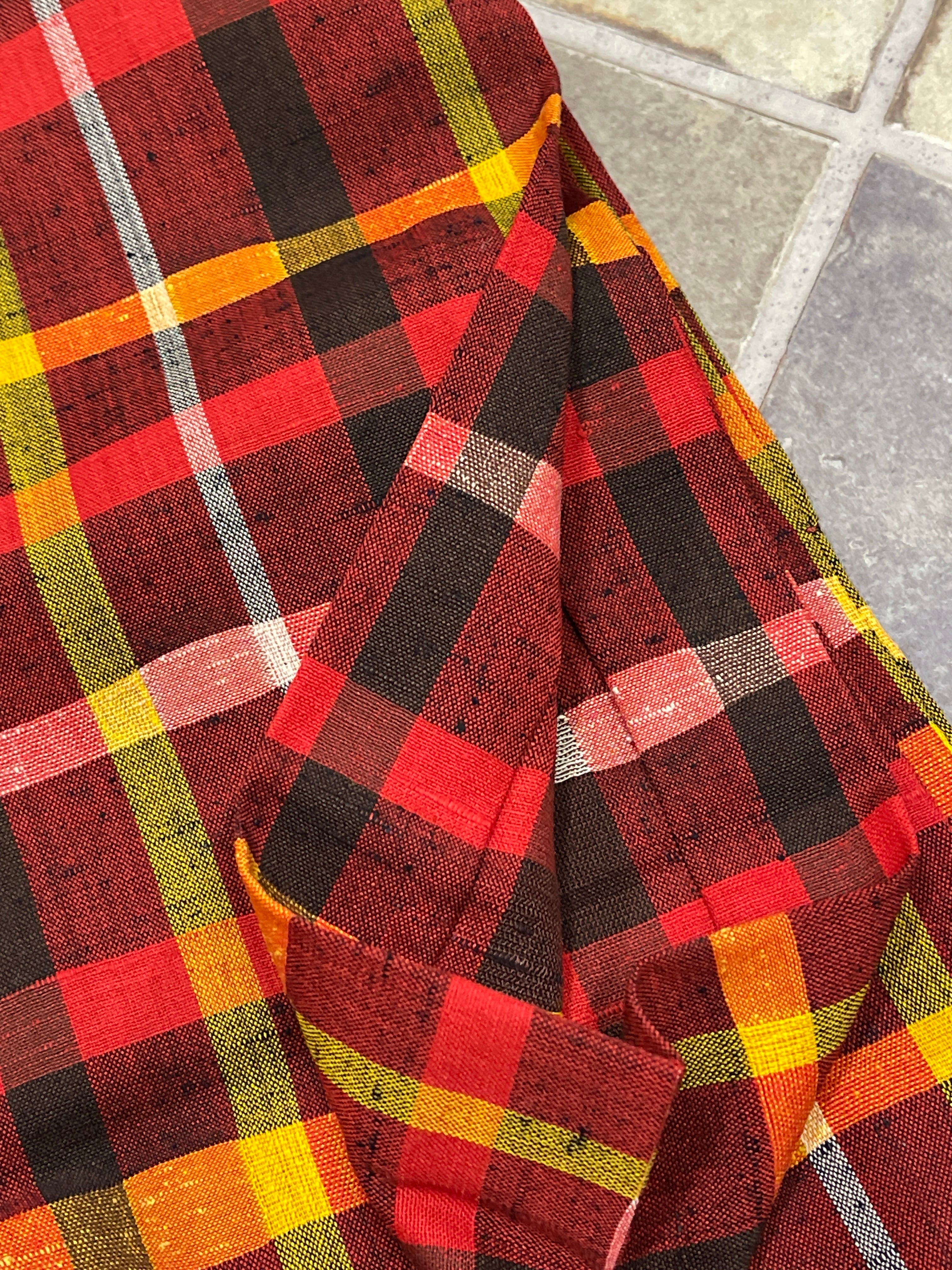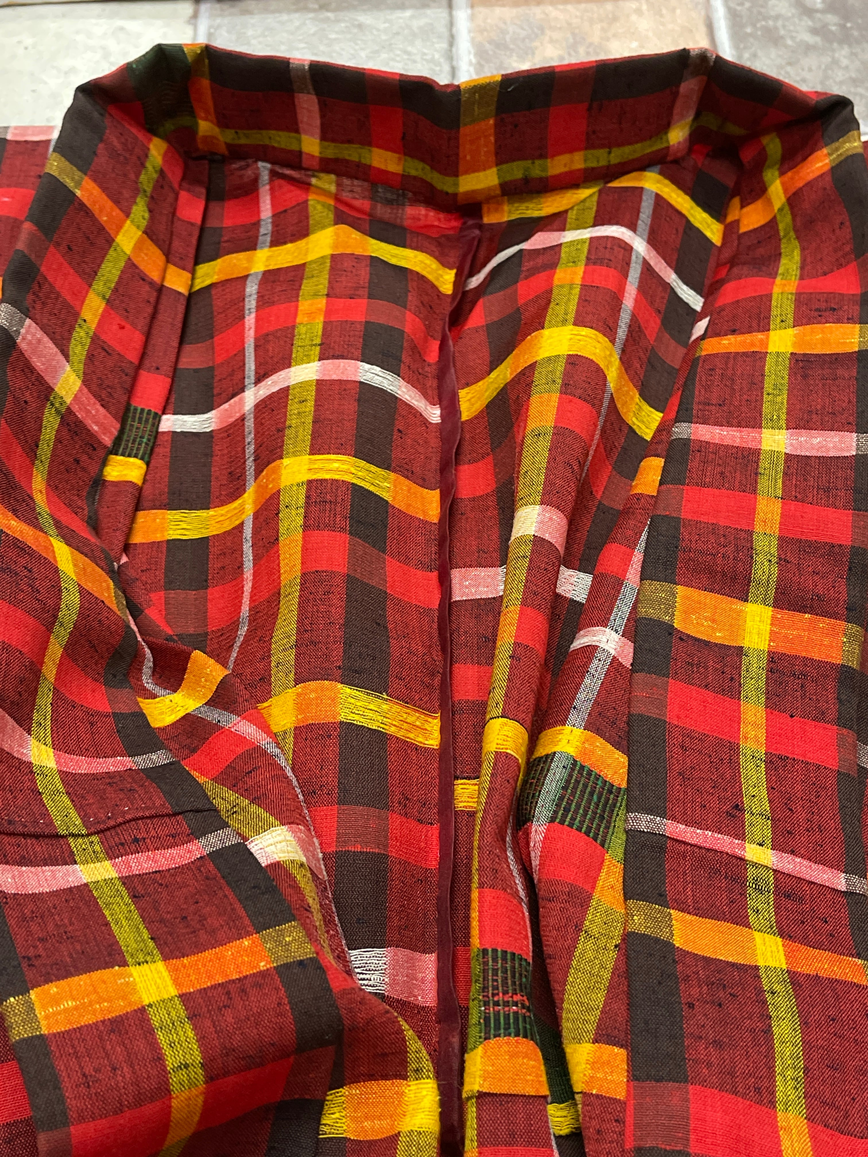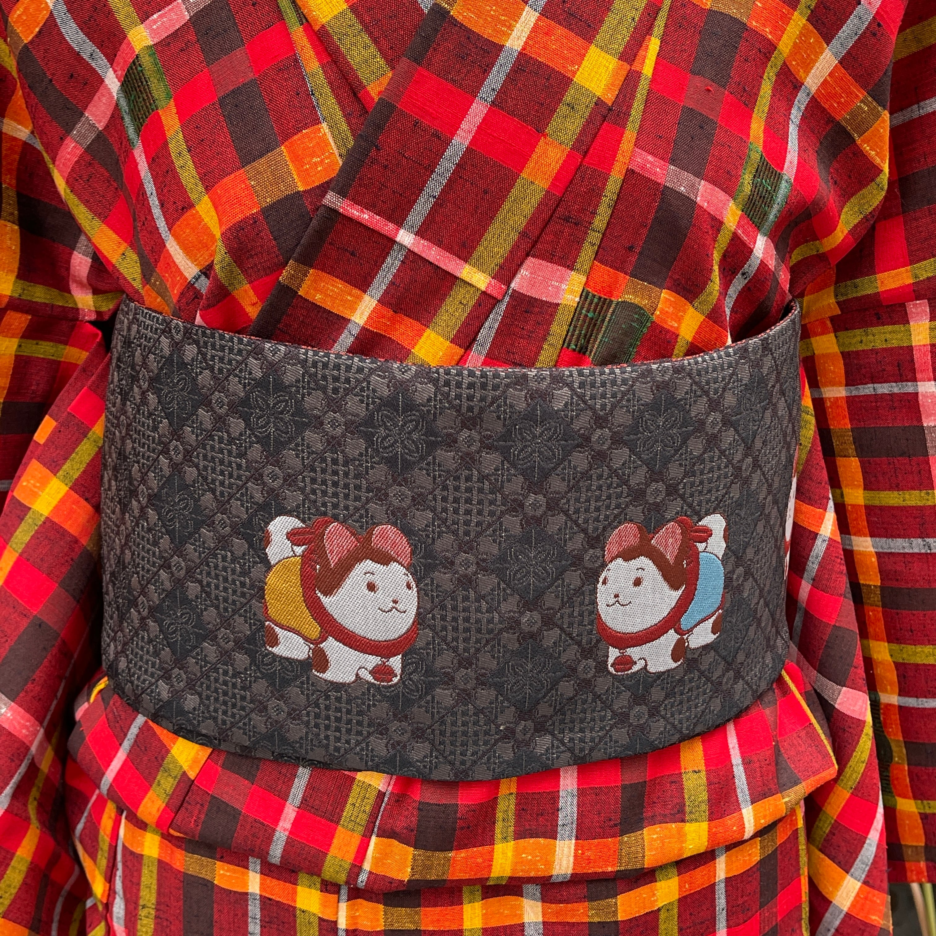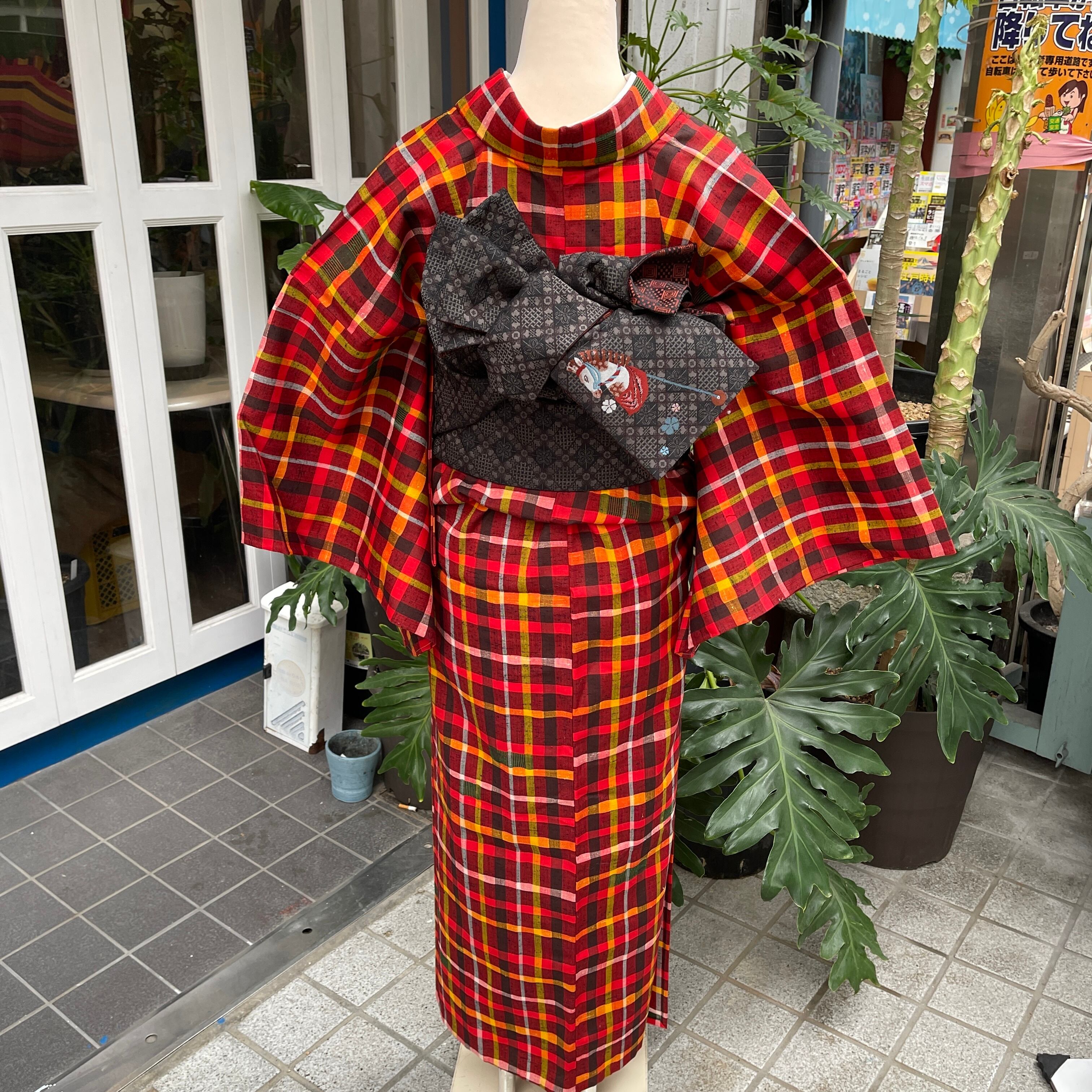 ウール着物 洗える着物 赤系 格子 チェック 普段着 日常着 カジュアル