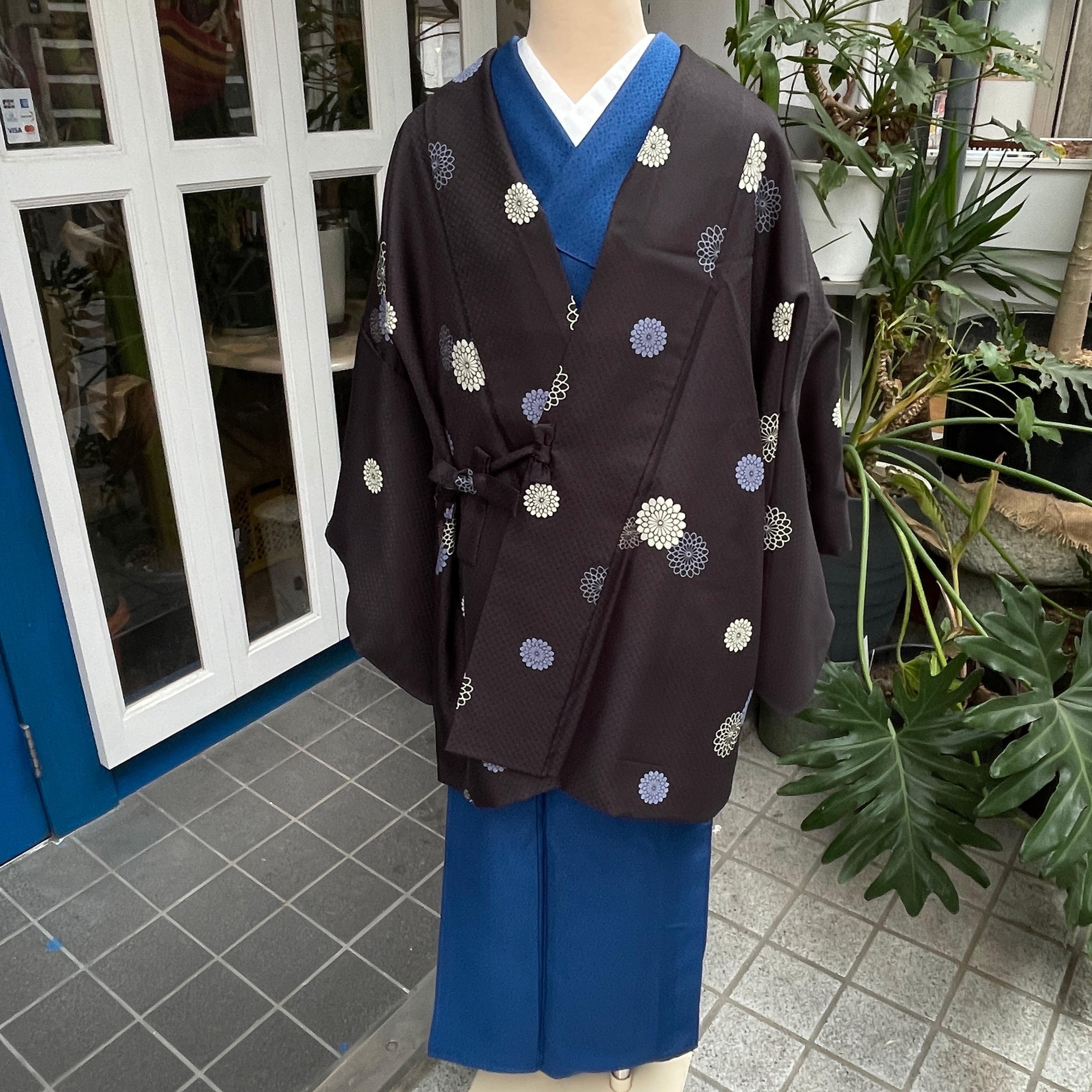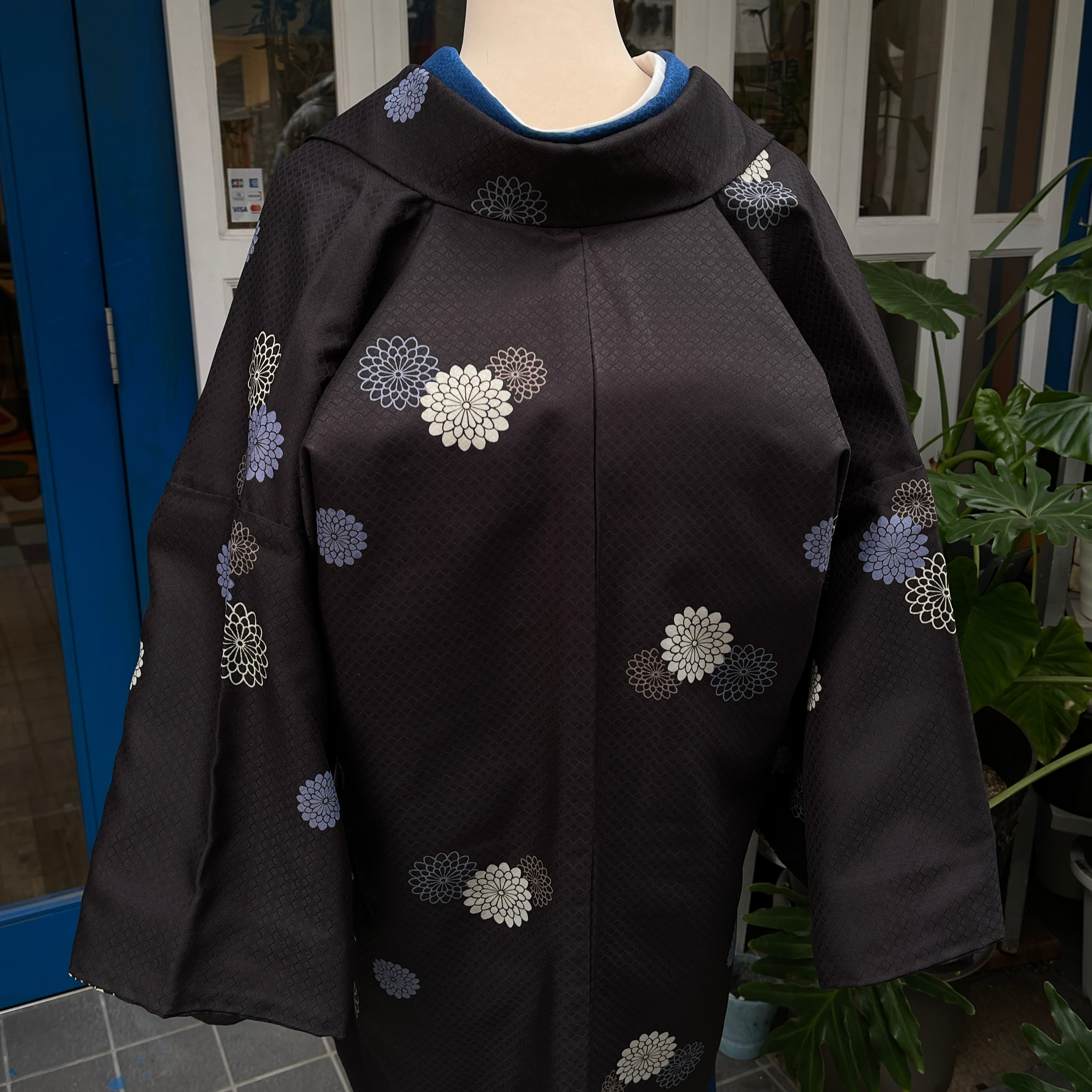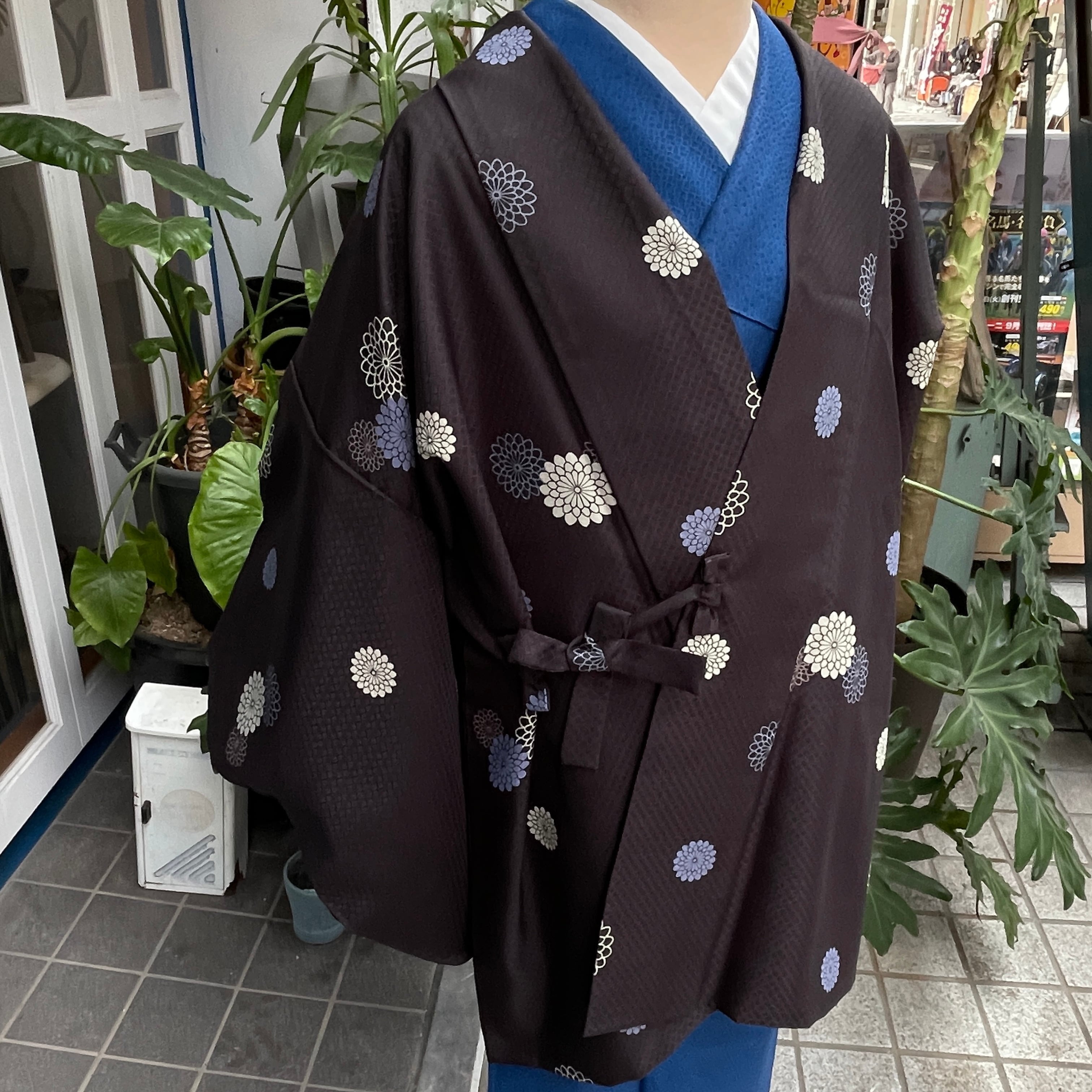 道中着 洗える着物 羽織 黒字 菊 カジュアル 日常着 普段着
