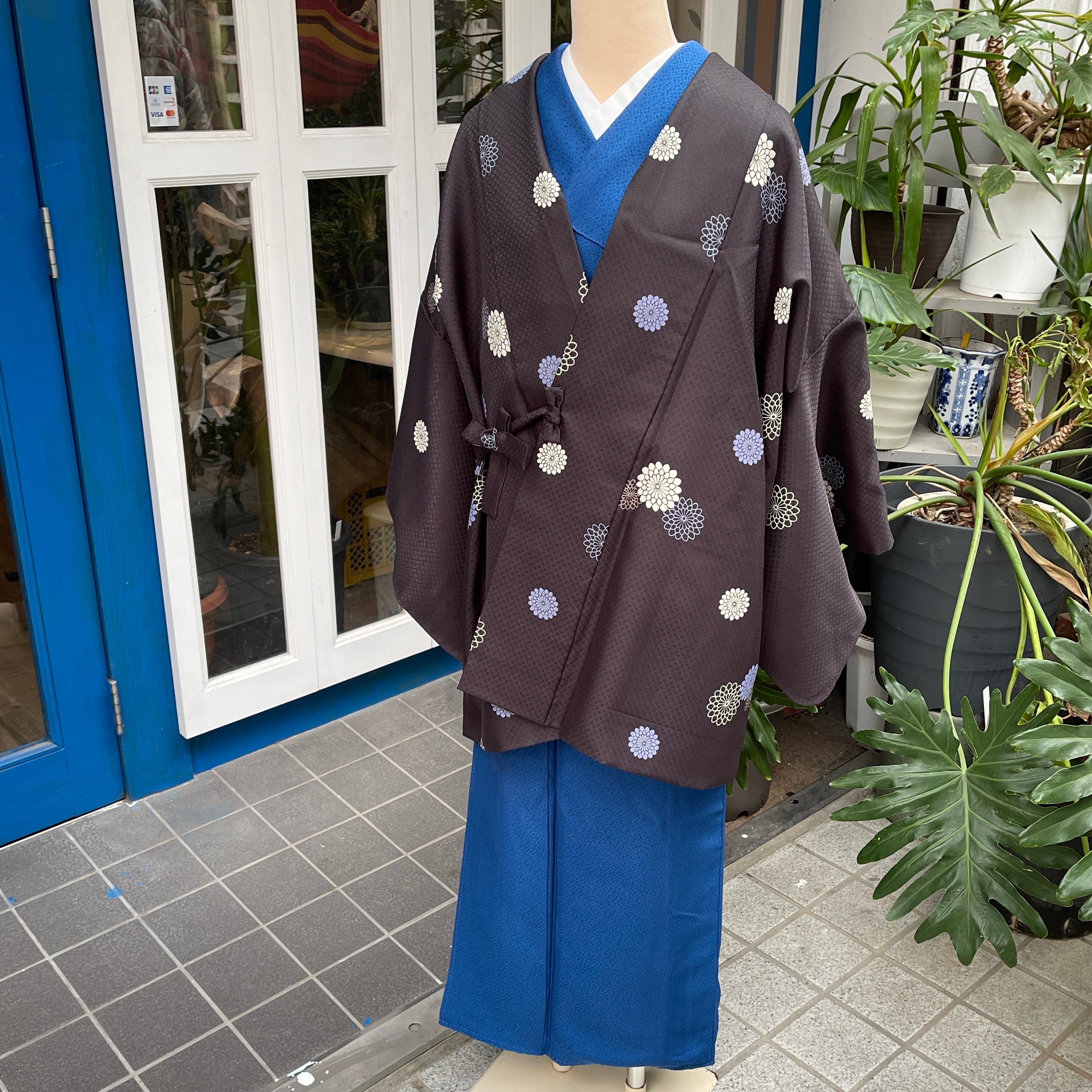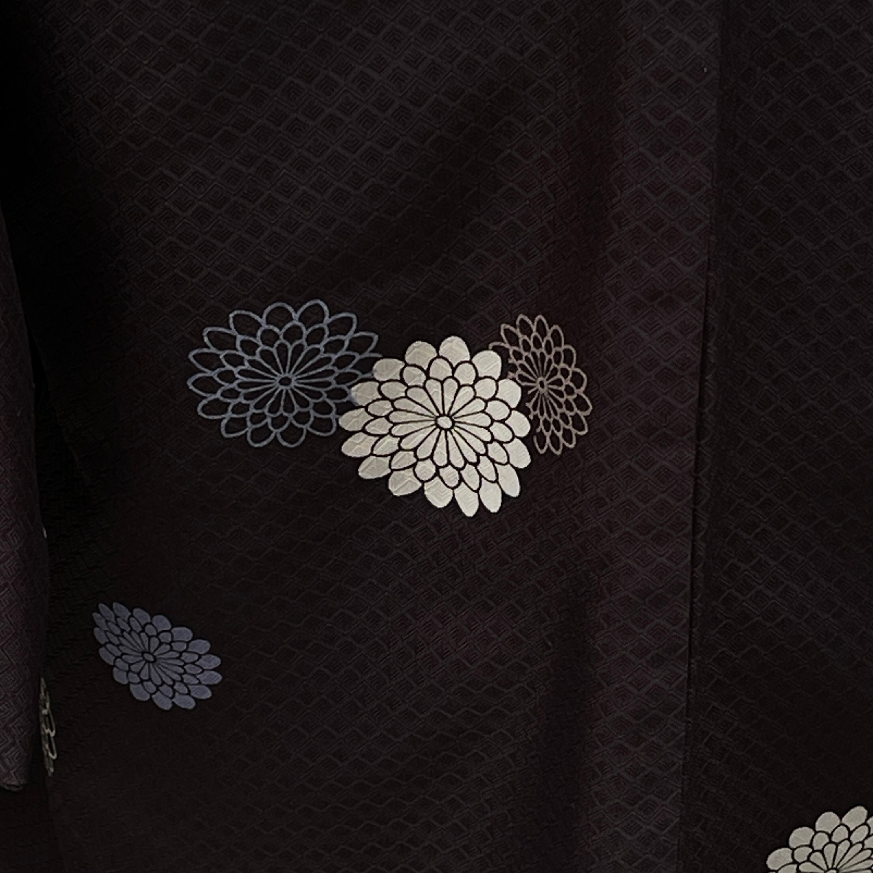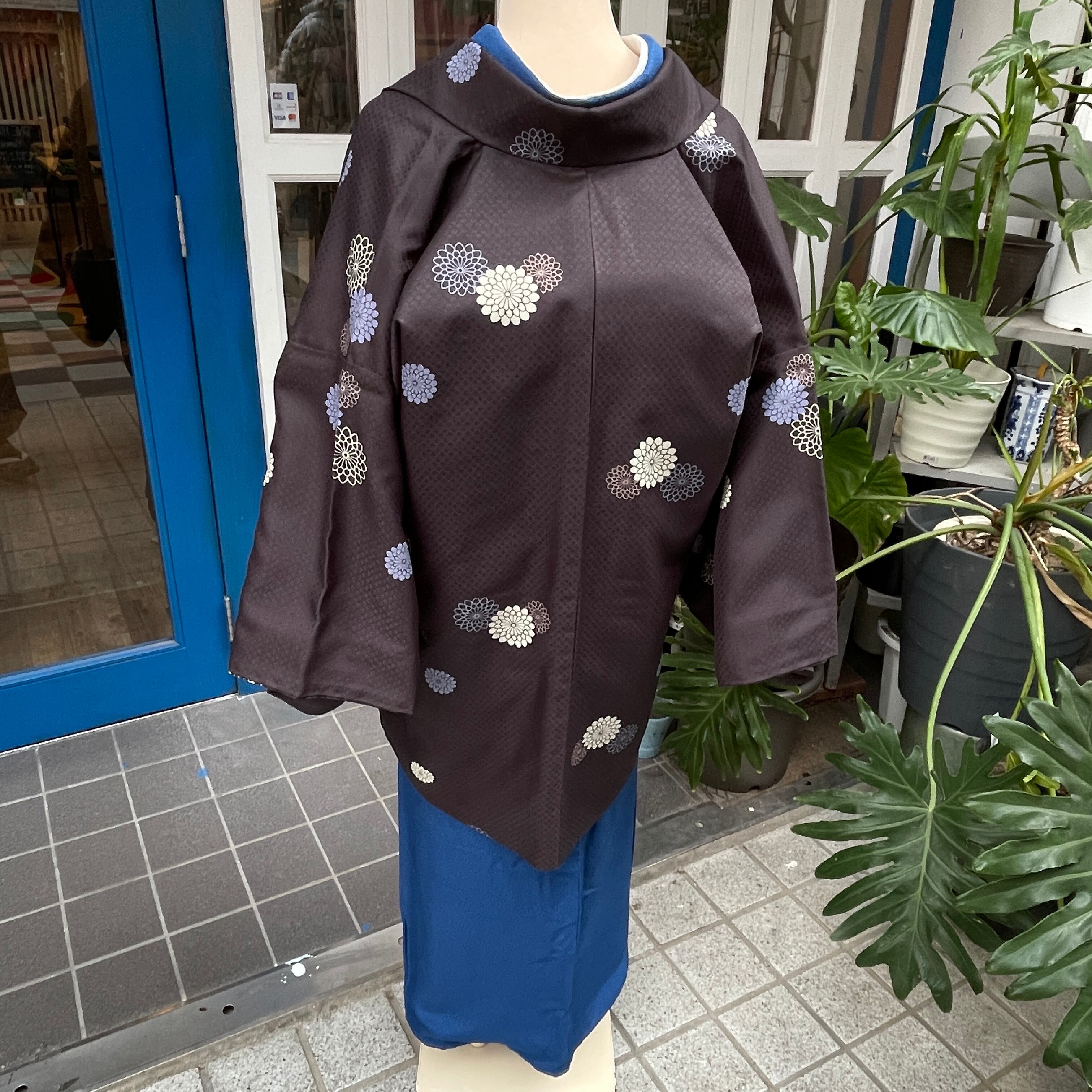 道中着 洗える着物 羽織 黒字 菊 カジュアル 日常着 普段着