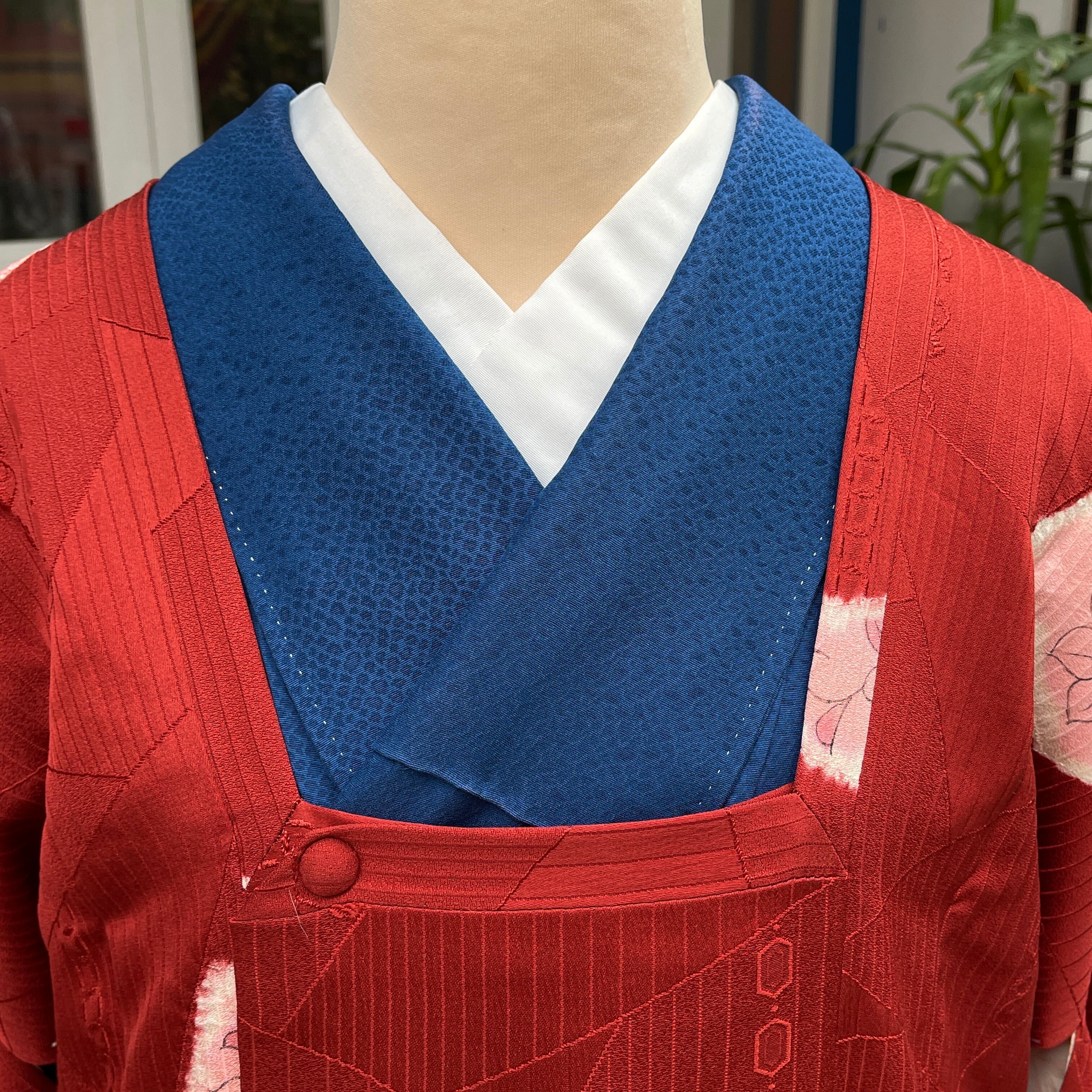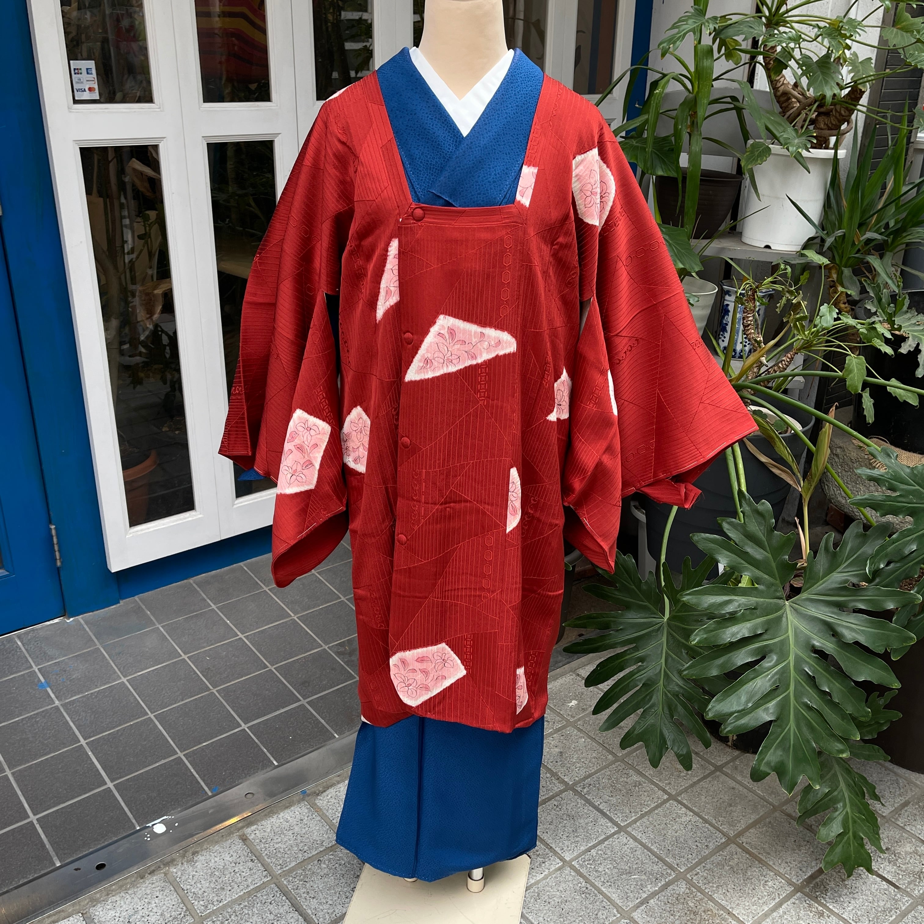 道行 道行コートトールサイズ 高身長さん 赤系 手描き椿