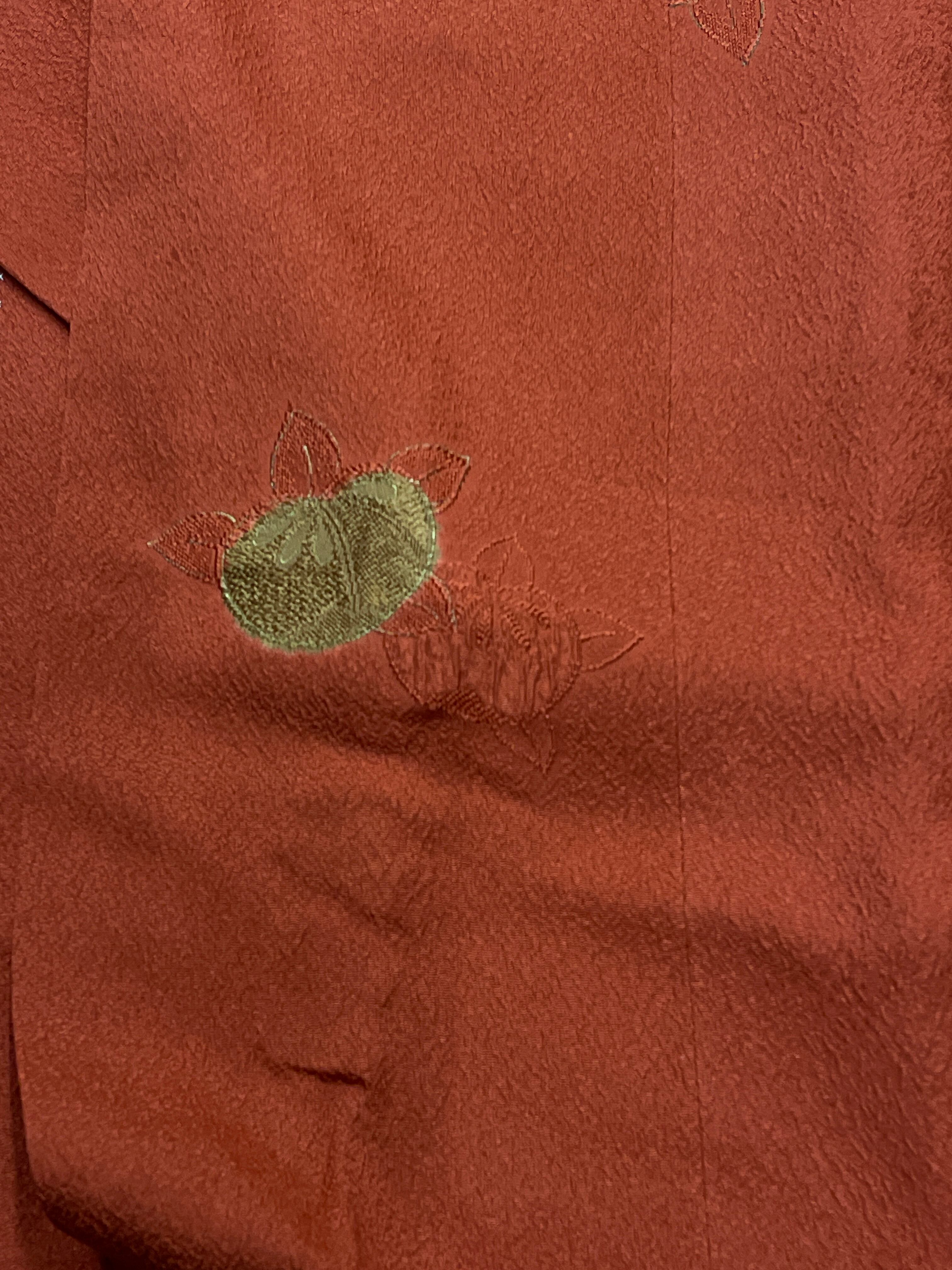 暖色系で所々に入った金茶の橘も上品で、飾り紐も可愛らしく見せてくれます。