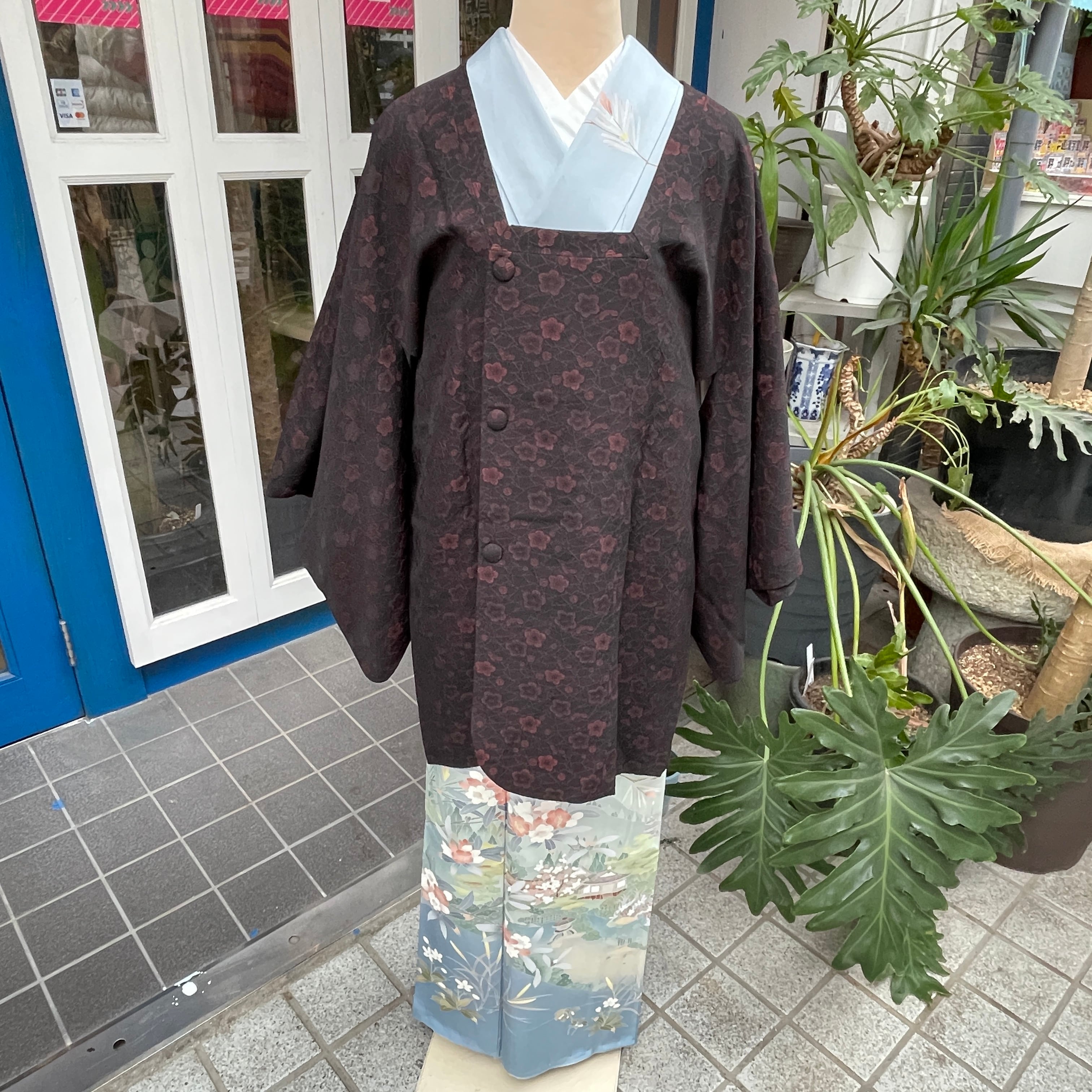 道行 道行コート セミアンティーク 黒系 梅づくし カジュアル セミフォーマル